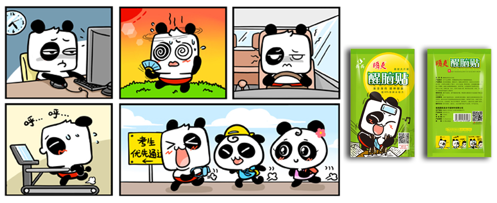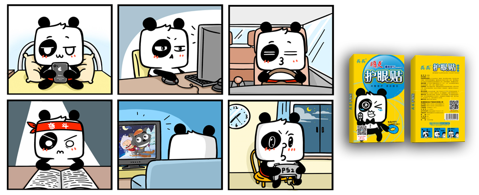 項(xiàng)目背景:瞬爽護(hù)眼貼與醒腦貼,針對兒童與上班族量身定做,用于保護(hù)眼睛與緩解疲勞,起到非常有益的作用。熊貓形象可愛易親近,與兵兵品牌兒童形象相呼應(yīng),其時(shí)尚與可愛的畫風(fēng),更能吸引孩子與年輕人的駐足。在包裝中,用色明艷大膽,卡通形象重點(diǎn)突出,整體視覺效果好。