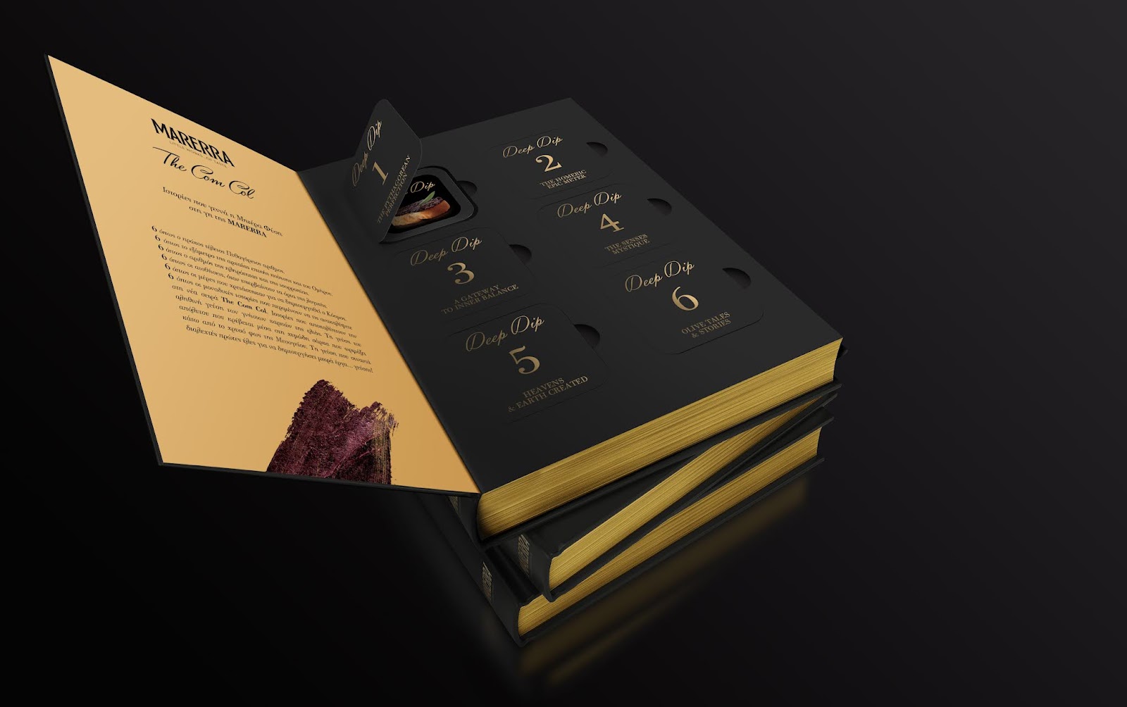 作為一份公司禮品,我們設(shè)計了一種書籍形式的包裝,其中包含六種不同品種的橄欖醬。橄欖醬包裝以橄欖醬精制產(chǎn)品為特色,以服務(wù)建議書的形式。除了橄欖醬,這本書還講述了馬雷拉哲學(xué)和優(yōu)質(zhì)橄欖。