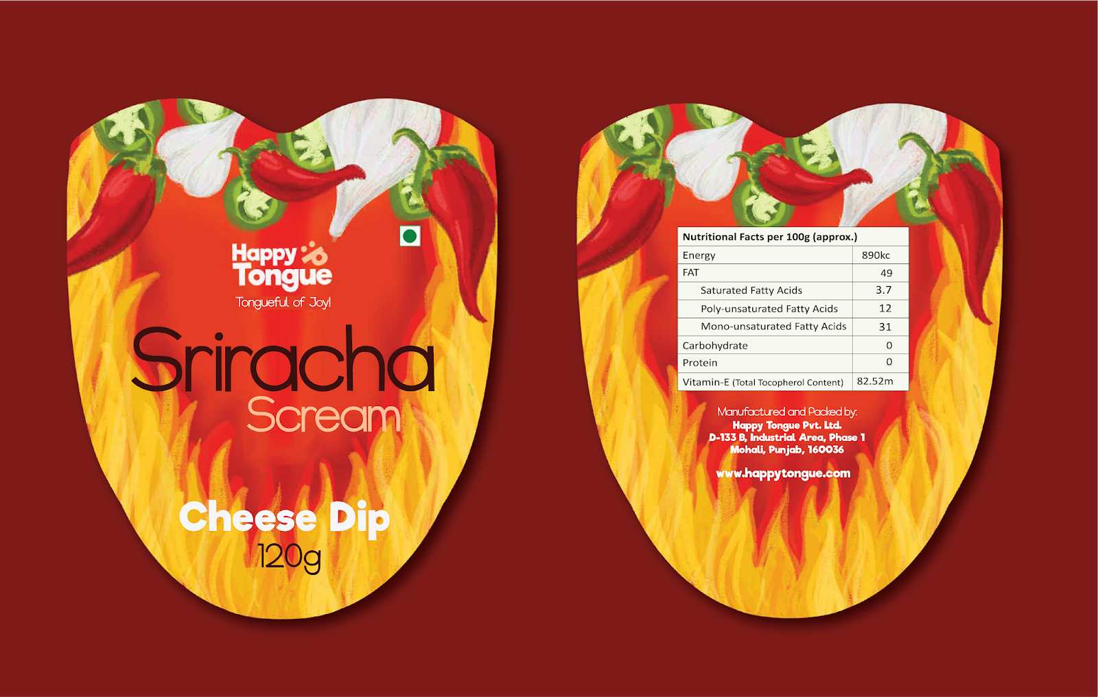 Happy Tongue 是一個(gè)提供印度墨西哥奶酪蘸醬的品牌。面臨的挑戰(zhàn)是制作一種反映品牌價(jià)值的包裝,以融入標(biāo)語“歡樂的舌頭”。為此,最后的罐頭做成了舌頭的形狀,這樣在打開蓋子,取下罐頭頂蓋后,感覺就像是在扭動(dòng)舌頭,吃到好吃的東西后的表情。