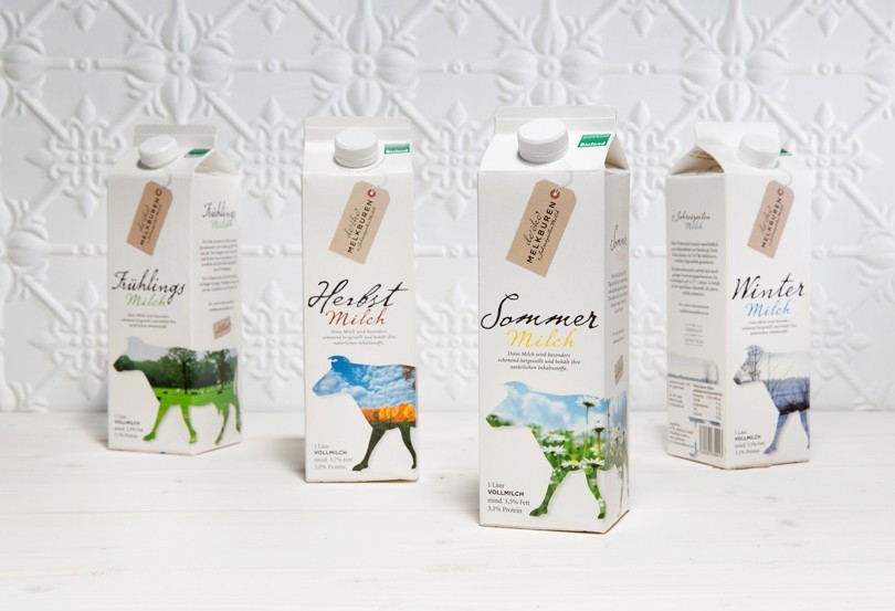 由德國北部荷斯坦地區(qū)的一群注重品質(zhì)的奶農(nóng)生產(chǎn)的一系列新的季節(jié)性有機(jī)牛奶。De ?k? Melkburen 品牌的外觀源自受原始農(nóng)業(yè)景觀啟發(fā)的真實自然屬性。