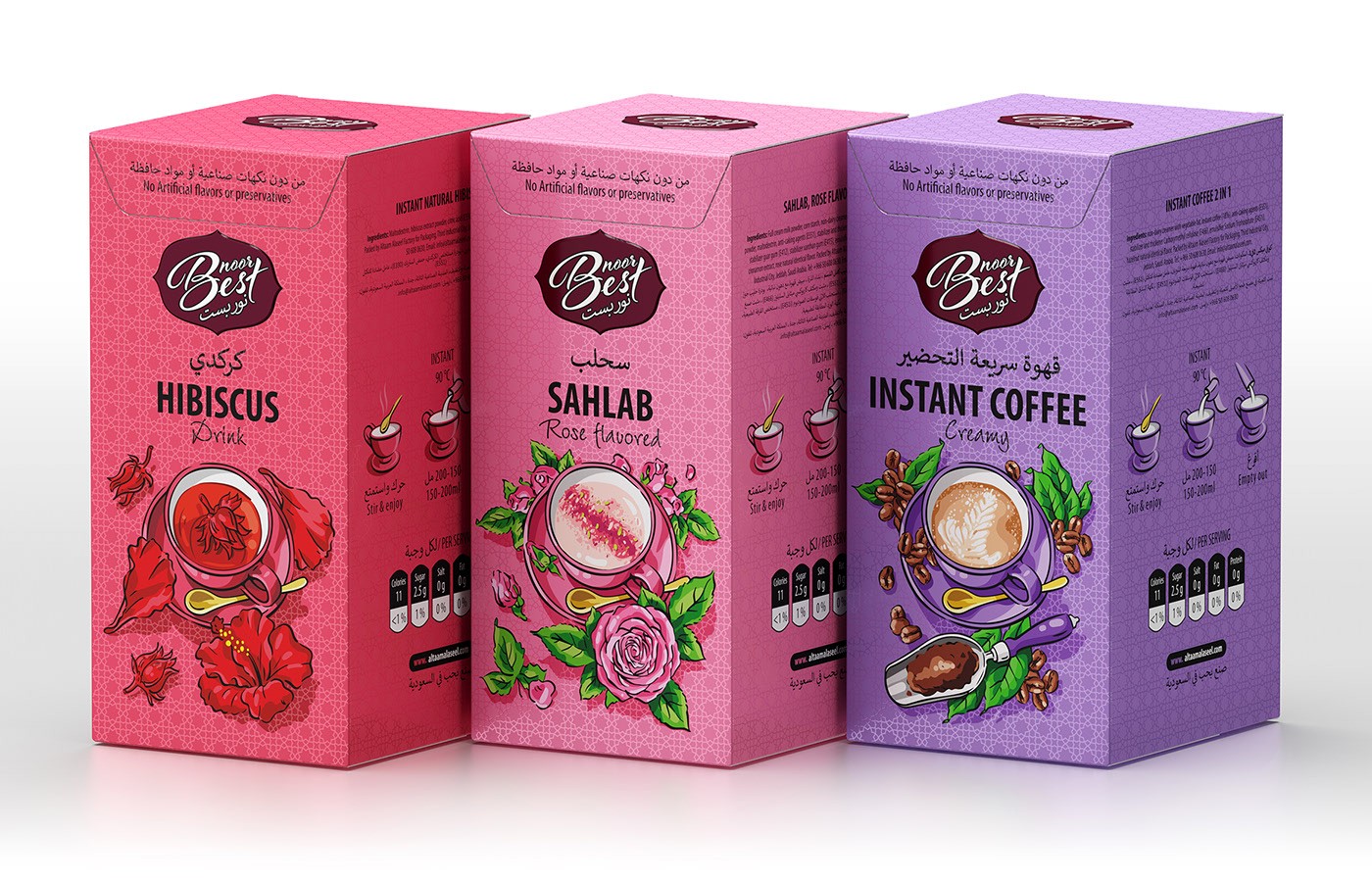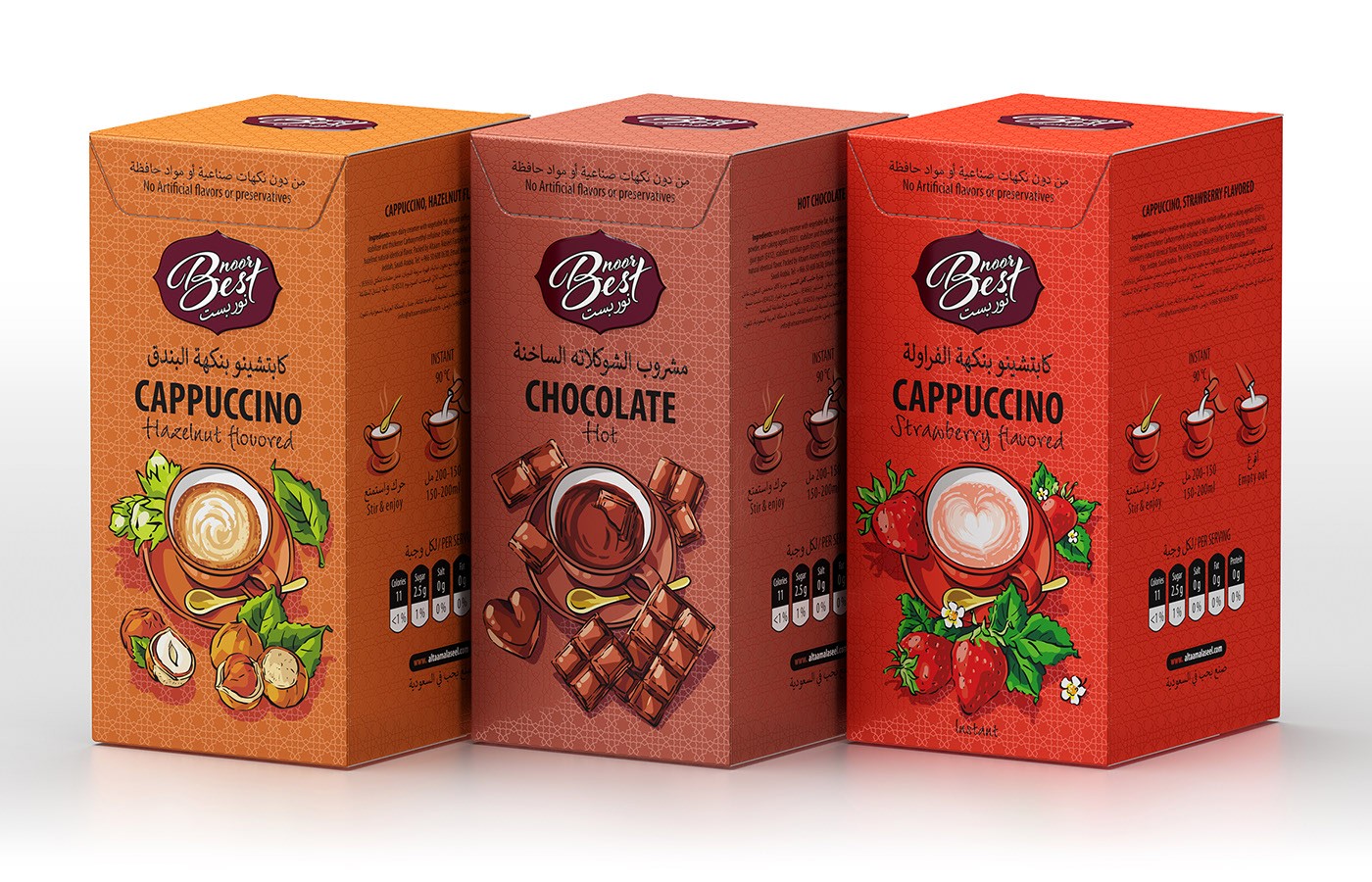 為了創(chuàng)造一個(gè)特殊的氣氛和項(xiàng)目形象的完整性,作者的插圖被繪制出來(lái),為每一種口味展示了豐富的內(nèi)容。每幅插圖都清楚地展示了即飲形式的飲料及其調(diào)味成分。包裝上各種明亮的信號(hào)顏色使您能夠輕松識(shí)別所需的飲料類型。
