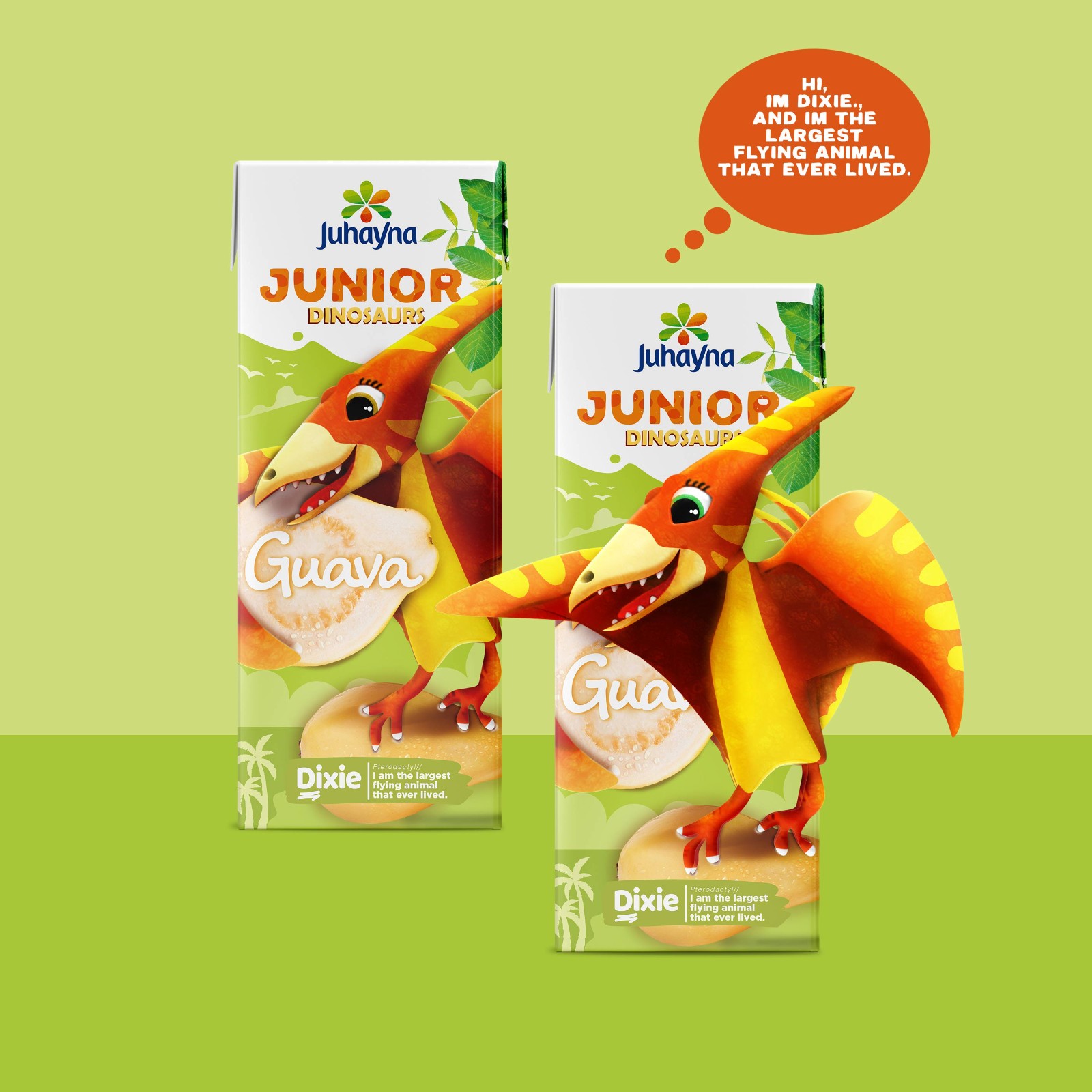 我們首先對Junior標(biāo)志進(jìn)行了全面改造,以鮮明的顏色選擇反映恐龍凹凸和鱗片般的皮膚紋理,始終在包裝上脫穎而出。。每一個包裝都是關(guān)于恐龍的不同分類的信息,將每個角色的世界與風(fēng)味的水果結(jié)合在一起。根據(jù)客戶反饋選擇恐龍口味對兒童選擇果汁有很大影響。