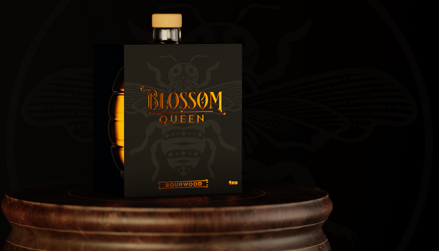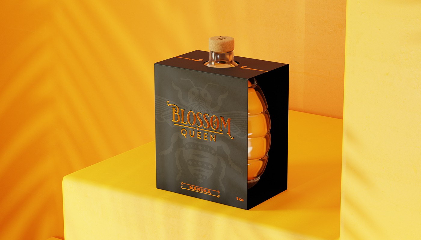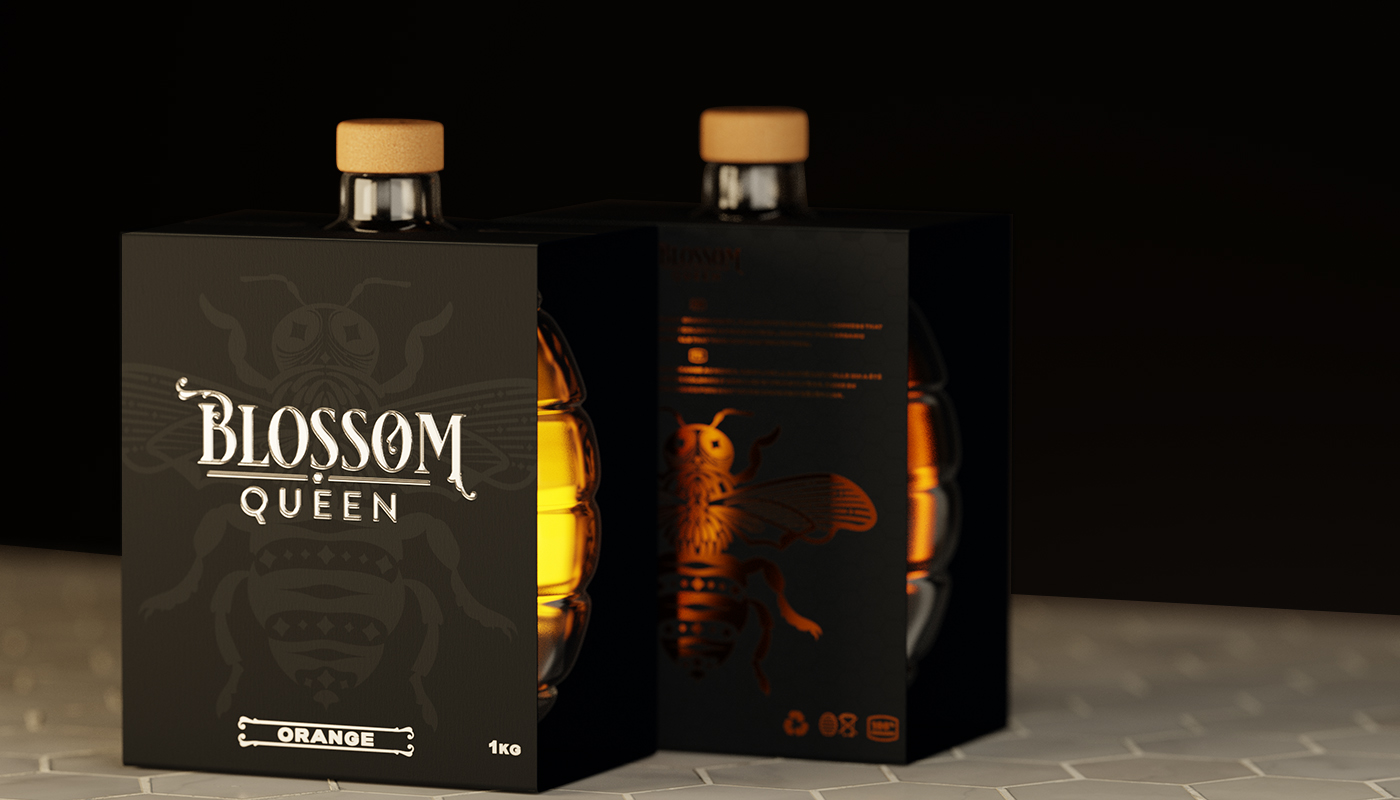 Blossom Queen是一個(gè)致力于為消費(fèi)者提供最優(yōu)質(zhì)蜂蜜的品牌,我們的使命就是從提到這個(gè)行業(yè)的重要組成部分“蜜蜂”開(kāi)始,為這個(gè)品牌建立一個(gè)標(biāo)識(shí),設(shè)計(jì)一瓶玻璃瓶,提醒每個(gè)人蜂蜜來(lái)自“蜂巢”,使其與市場(chǎng)上的任何瓶子或容器有所不同。最后用一個(gè)豪華的包裝把它包起來(lái),提供更多關(guān)于每個(gè)罐子里裝的東西的信息。