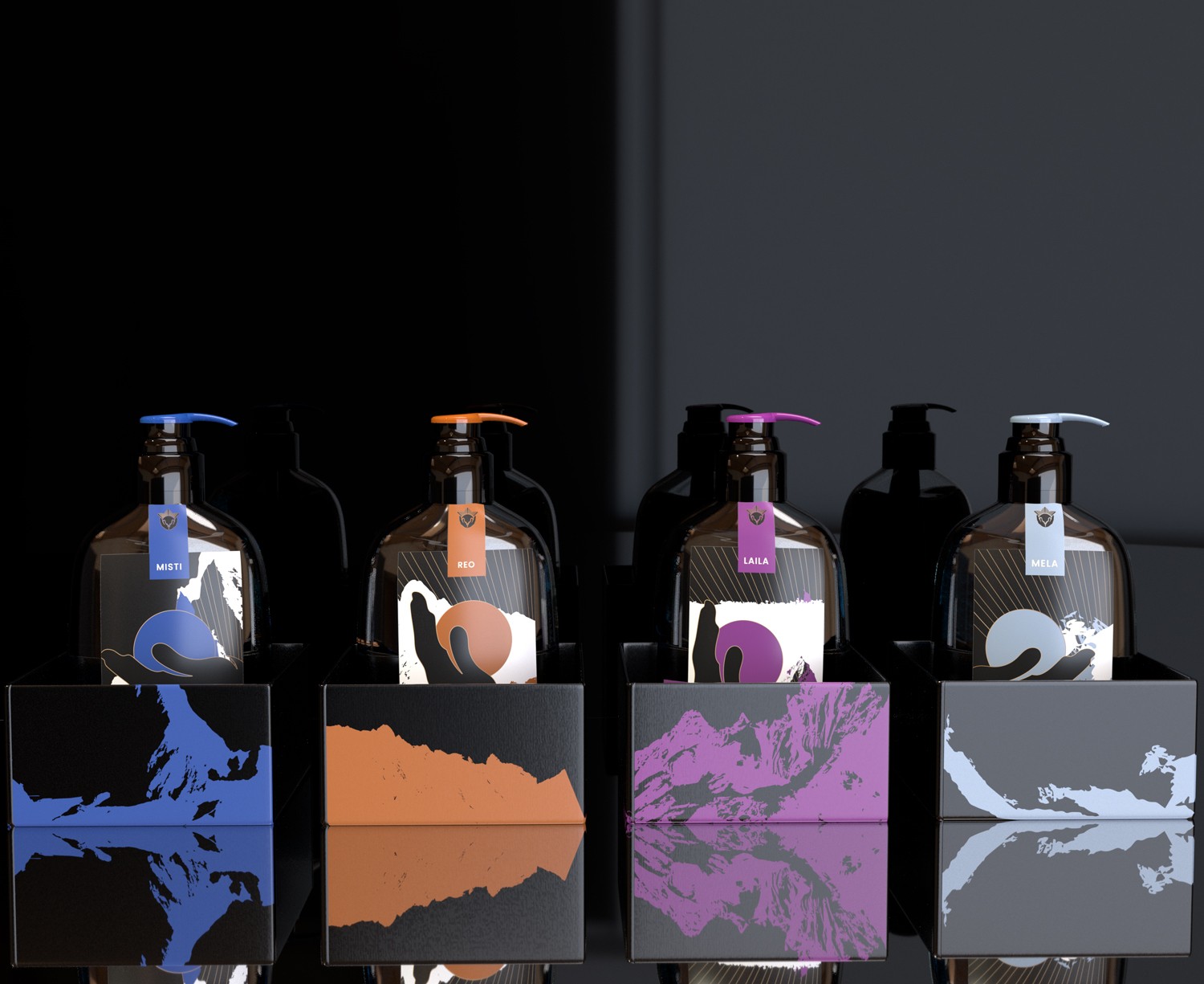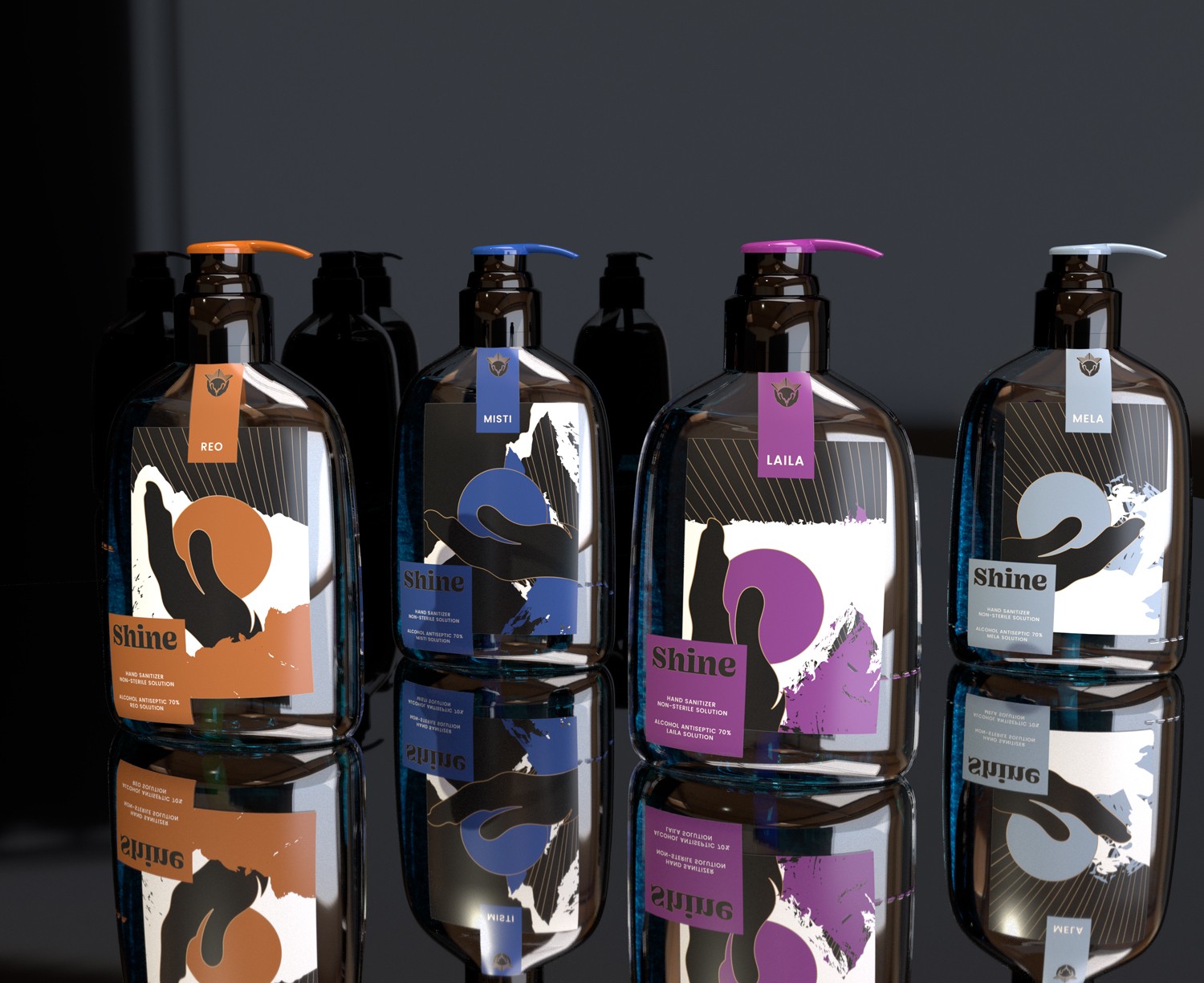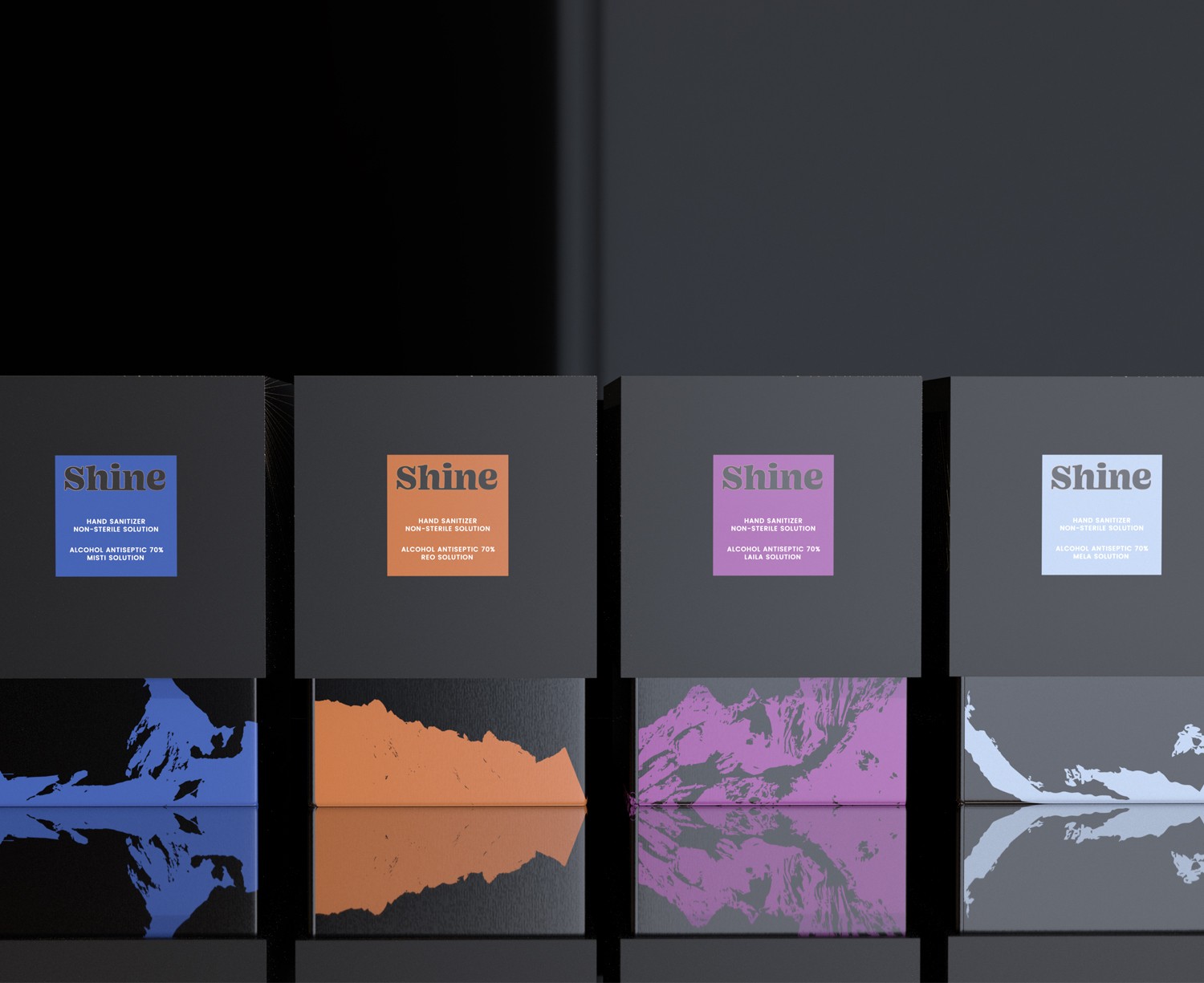 包裝背后的理念是傳達高品位的外觀和感覺,以幫助品牌在市場中閃耀。標(biāo)簽設(shè)計通過展示一只伸著太陽的手(比喻在手上使用消毒劑)與不同形狀的山脈以一種抽象的方式結(jié)合,圍繞忠誠、激情和移情的品牌核心價值體現(xiàn)了品牌信息。整個產(chǎn)品的色調(diào)選擇,以喚起不同季節(jié)的陽光照射在山上的氣氛。