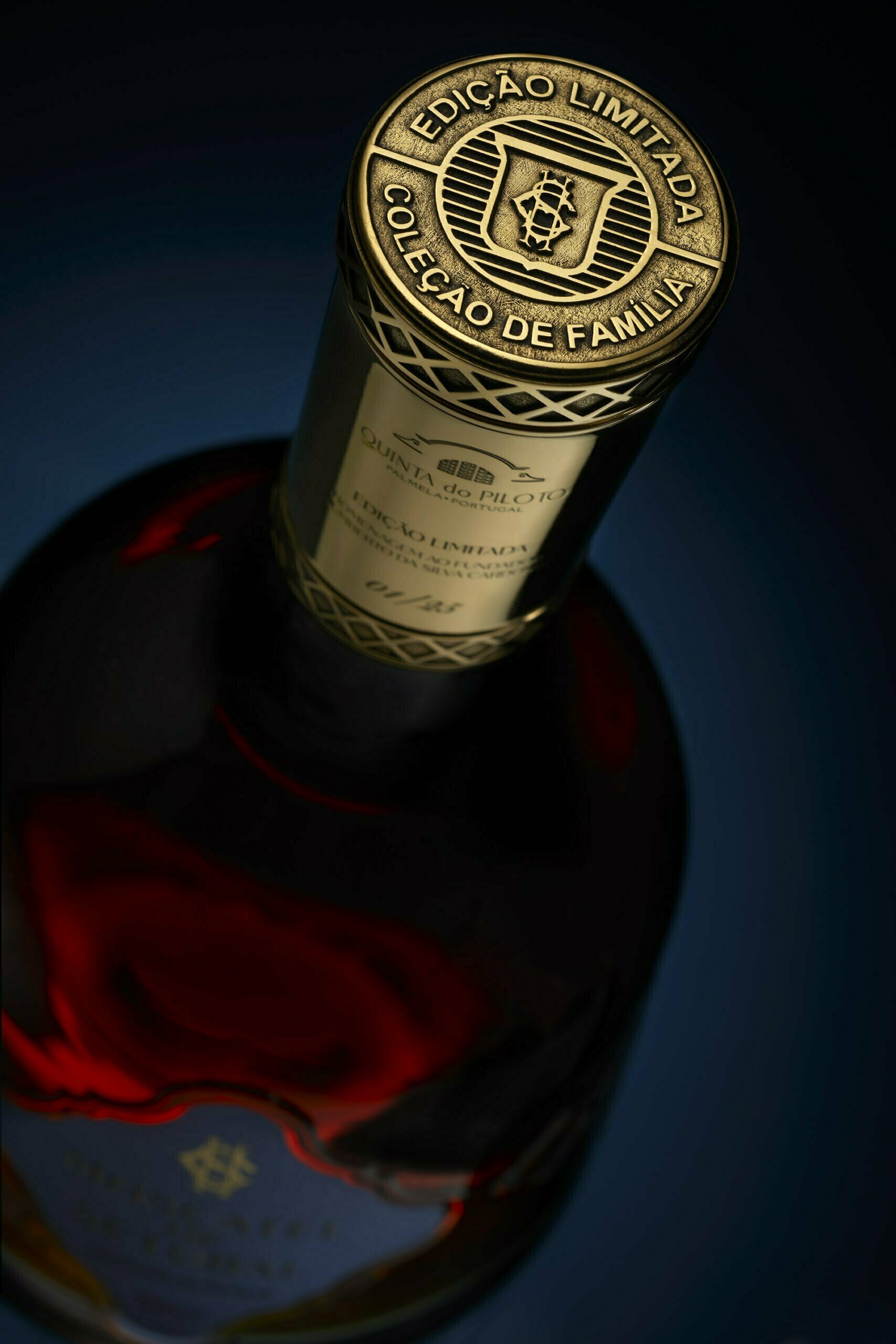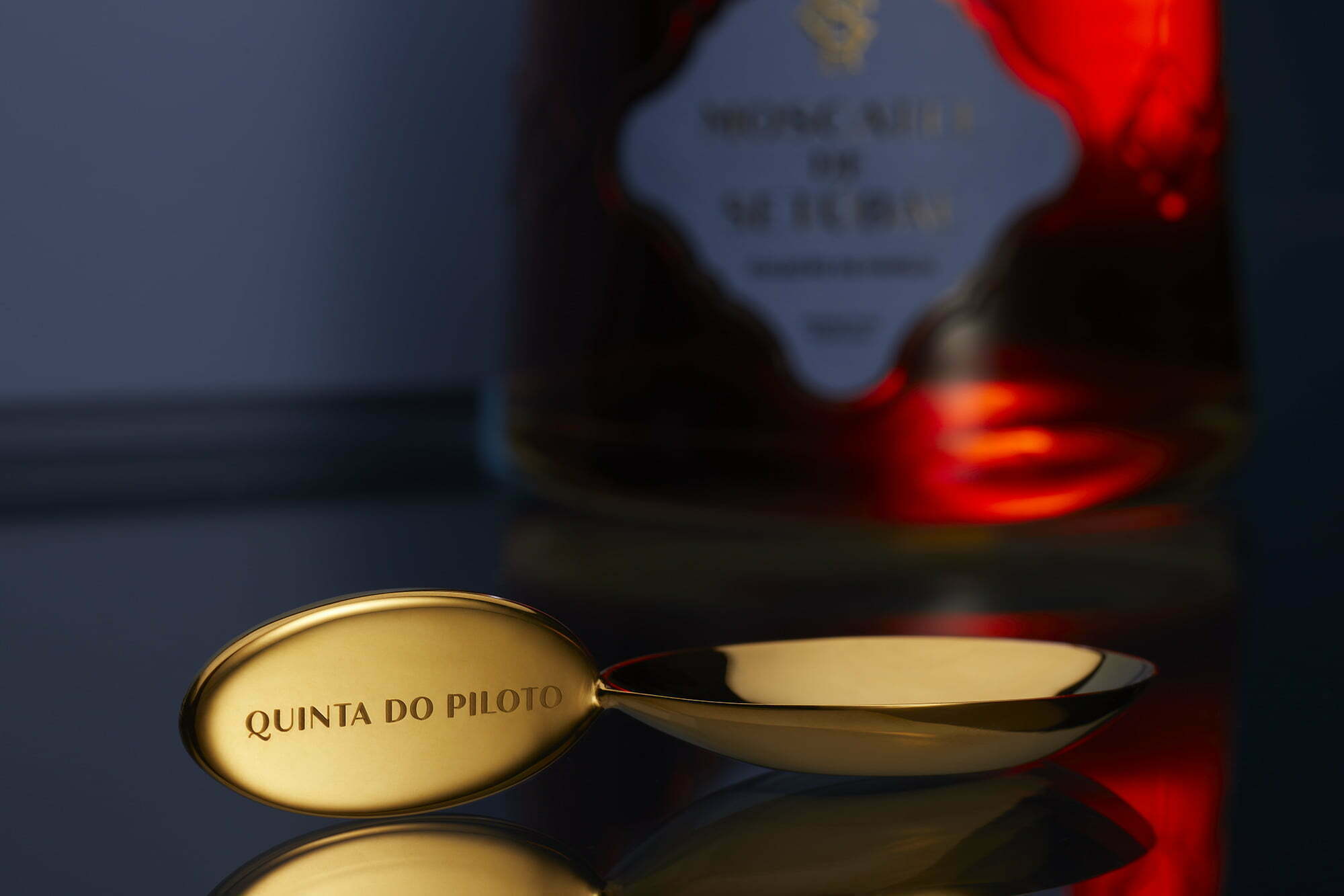 The colors chosen are distinct and, at the same time, identifying of the Quinta and of the region. Omdesign was inspired by an original bottle of Moscatel de Setúbal to create the exclusive decanter that is adorned with a collar and has several elements that refer to the cinema theatre in Palmela, built at the behest of Humberto da Silva Cardoso. We also used the monogram present on the gate of the cinema with the initials of the founder, we merged all the elements and we took the detail we have on the packaging and on the decanters to the original plaster ceiling of this emblematic room. These exclusive pieces were also completed with details of some tiles of the reception and the bartop has an interlacing which represents the tradition and the art of well-making these Moscatéis. This edition is, without a doubt, a homage to Quinta do Piloto and its founder, as well as to the region and to the Moscatel de Setúbal category.