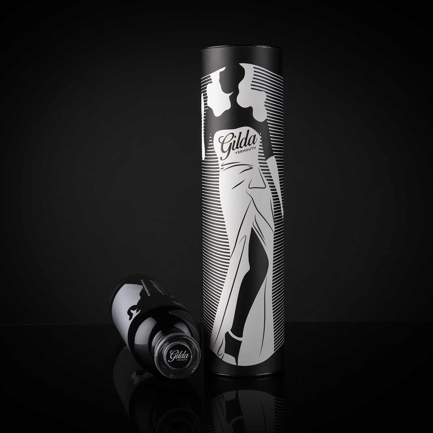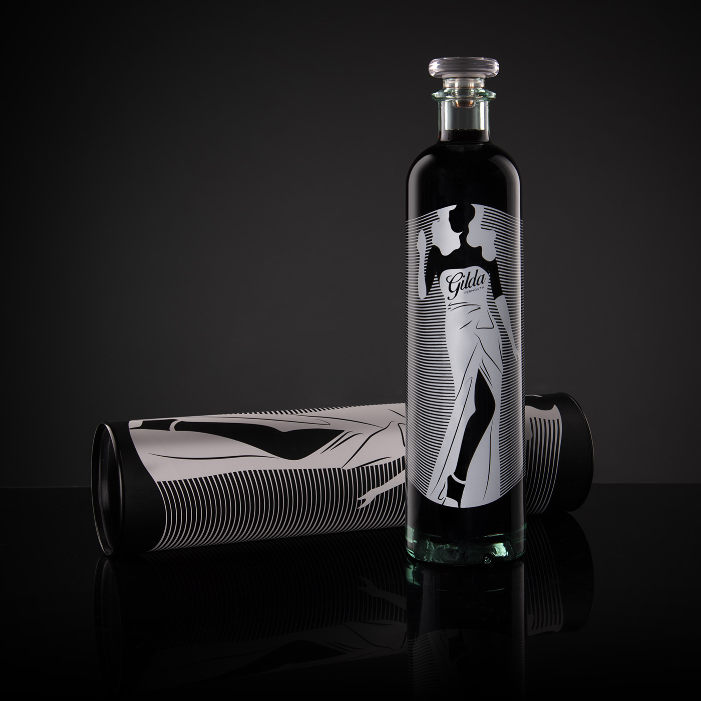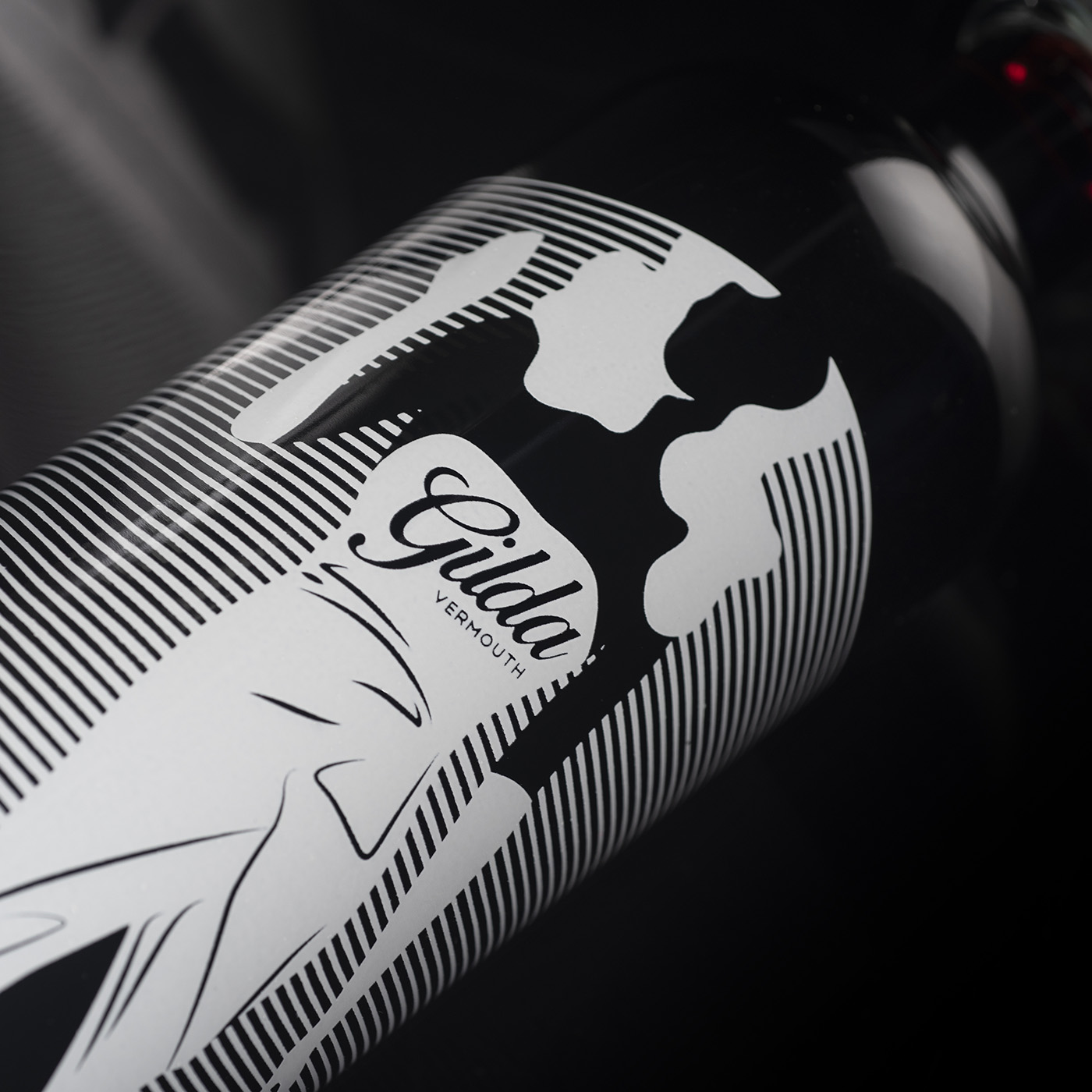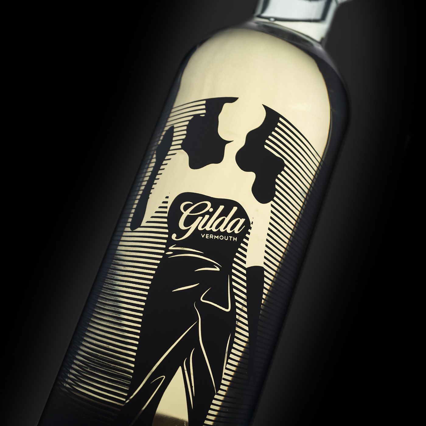 吉爾達(dá)是來自 Bodega Latarce 的新苦艾酒。她以麗塔海華絲主演的電影命名。設(shè)計(jì)靈感來自電影中主角的著名舞蹈,該舞蹈因誹謗而被許多國家禁止。為此,我們選擇了一個(gè)風(fēng)格化的瓶子,并絲網(wǎng)印刷了輪廓以及具有“莫爾”效果的線條,并賦予整體活力,因?yàn)楫?dāng)瓶子移動時(shí),人物似乎也在移動。苦艾酒有白色版本,設(shè)計(jì)相同,但采用黑色絲網(wǎng)印刷。為瓶身加冕,vinolok 瓶蓋與刻字一起使這款瓶身成為一款原創(chuàng)而優(yōu)雅的套裝。