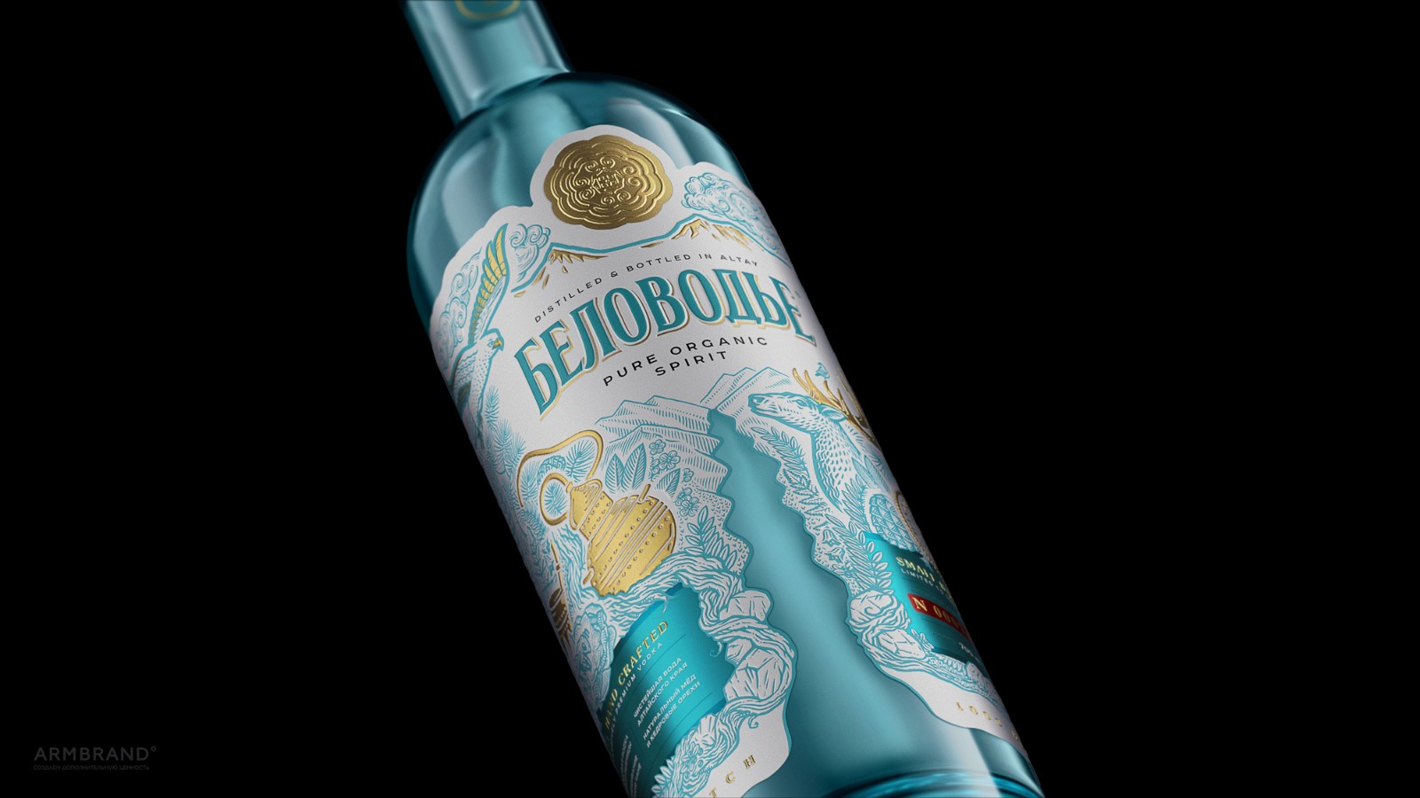 對于小批量的超優(yōu)質(zhì)單一麥芽伏特加“Belovodye”,ARMBRAND 工作室創(chuàng)作的設(shè)計靈感源自對阿爾泰的真摯熱愛。