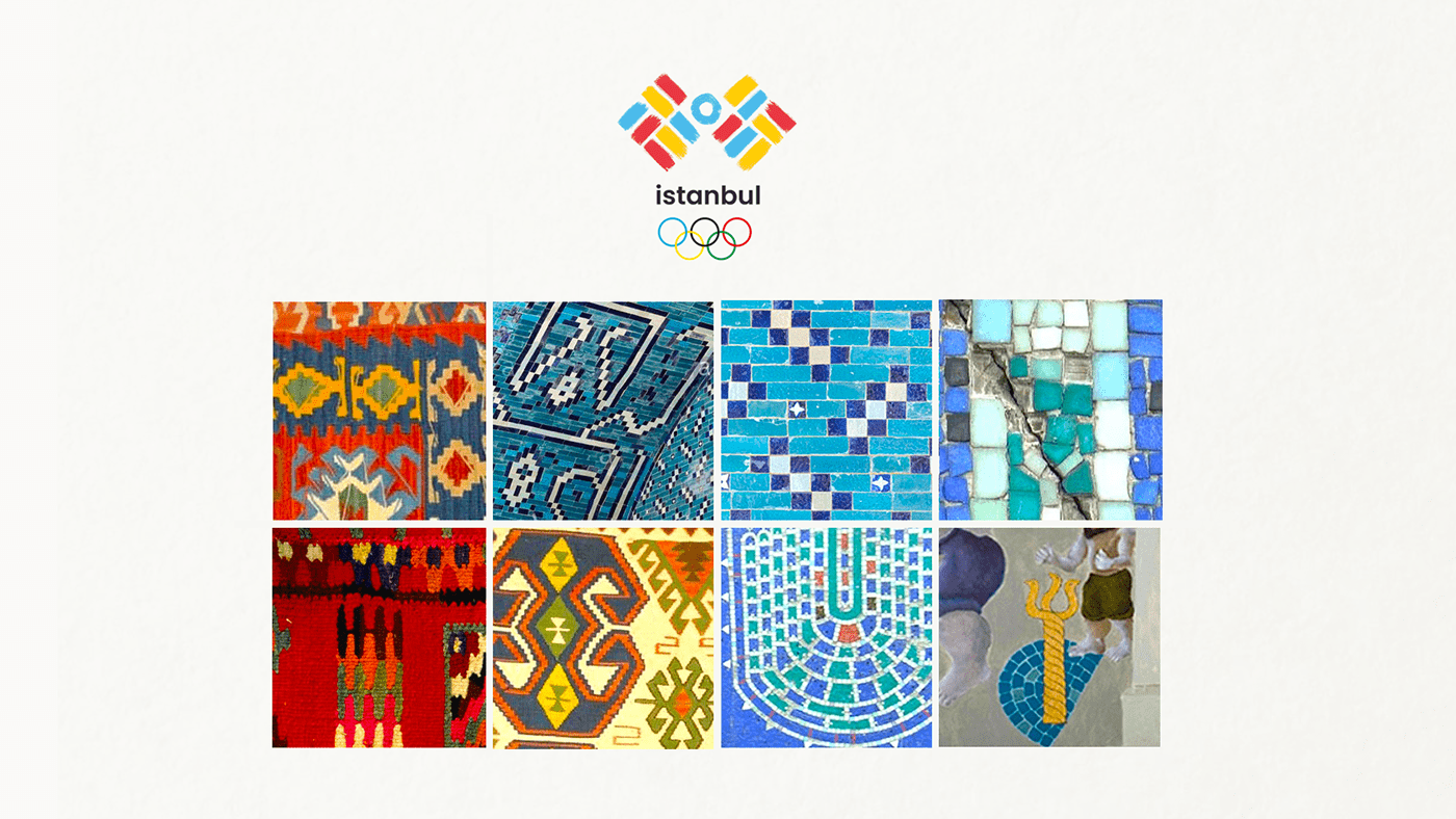 該標(biāo)志是通過抽象伊斯坦布爾的馬賽克(Bedri Rahmi Eyübo?lu “Istanbul”馬賽克)和安納托利亞地毯圖案(Buka?? 符號,象征團(tuán)結(jié)和團(tuán)結(jié))而創(chuàng)建的,旨在根據(jù)奧運(yùn)會反映伊斯坦布爾的精神。