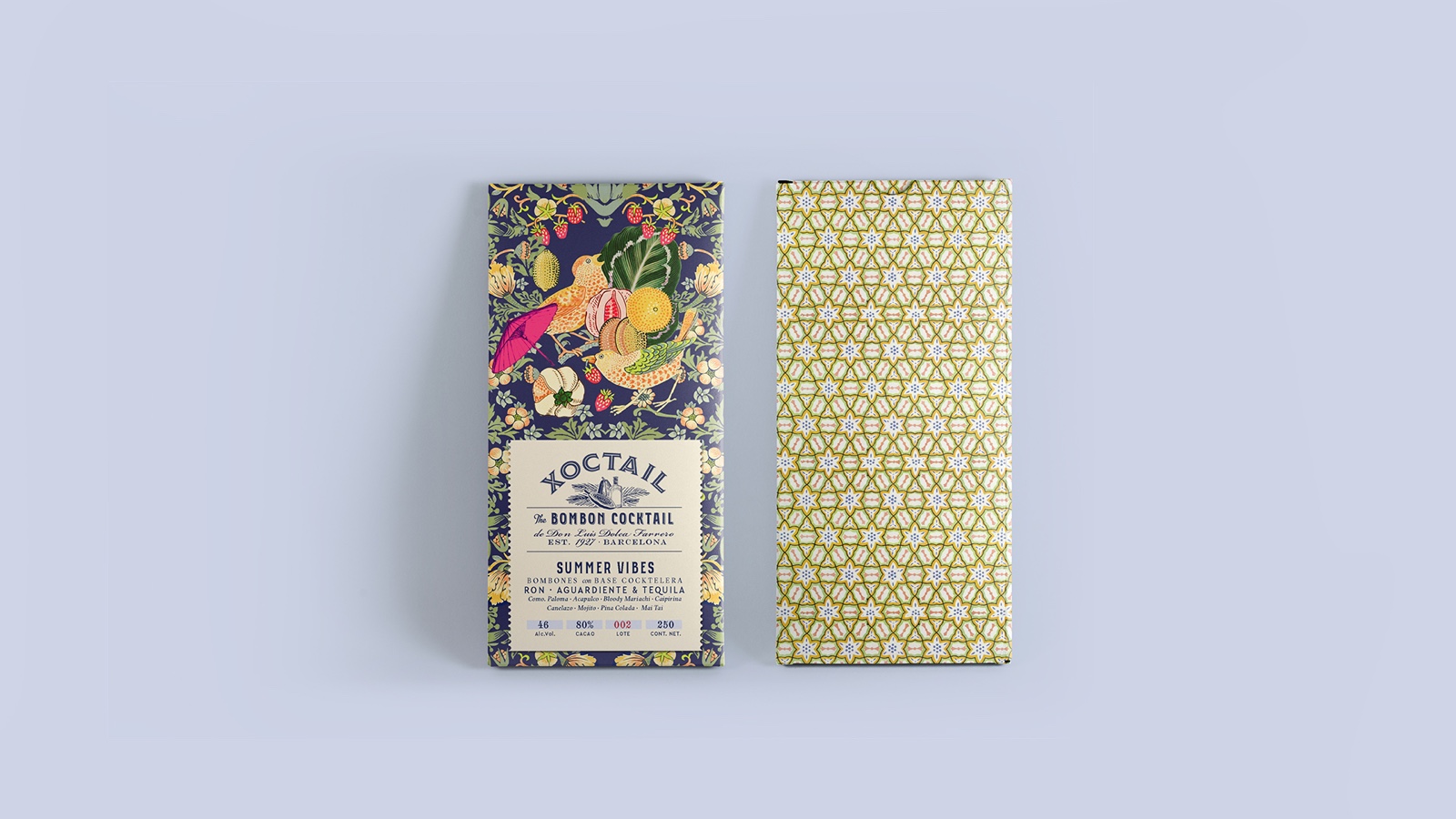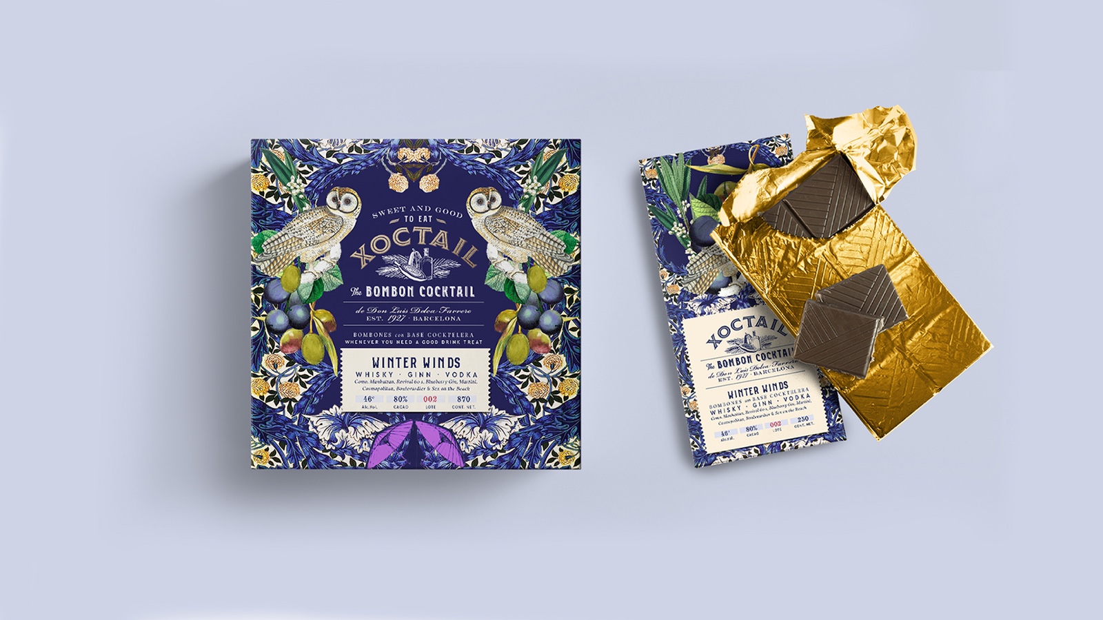 雞尾酒底巧克力包裝設(shè)計(jì)。靈感來(lái)源于威廉·莫里斯(1834-1896)的圖案。挑戰(zhàn)在于通過(guò)獨(dú)特大膽的口味,將非常傳統(tǒng)的產(chǎn)品與現(xiàn)代時(shí)尚的外觀結(jié)合起來(lái)。重塑傳統(tǒng)。