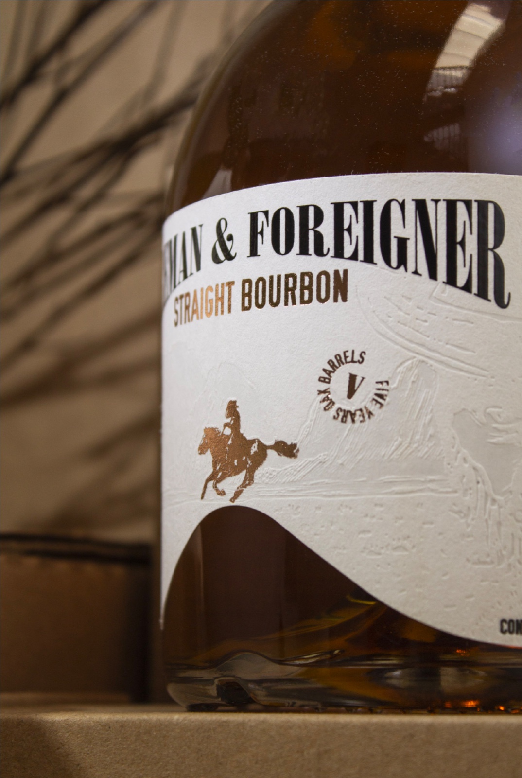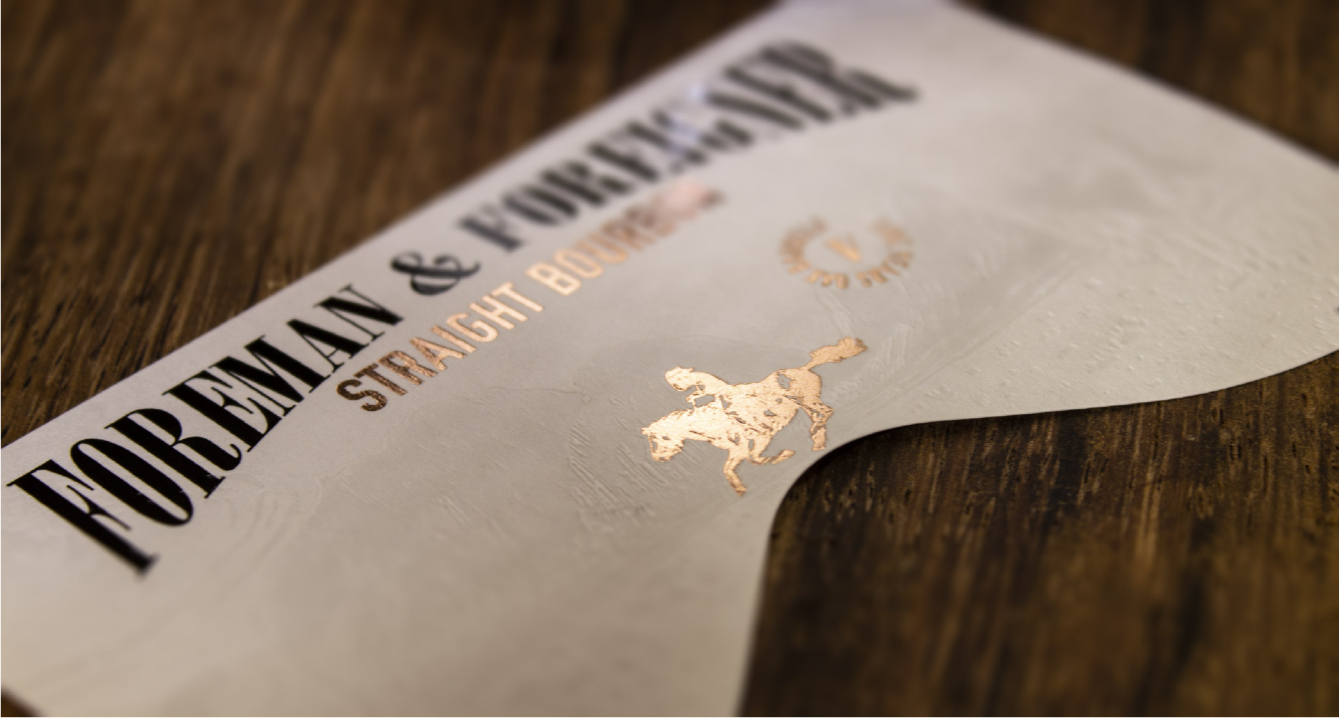 Foreman & Foreigner is a classic desert story where the Bandidos become friends through a drink that brings them together. Fasson?? PAPER WATERMARK 120 FSC was the indicated paper for this project since it is intended to generate an extremely clean visual spectrum through a highly detailed label with little color. We enhance some elements as an insignia by means of a WATERMARK EFFECT HOT STAMPING + HOT FOIL KURZ 355 that reminds us of the old West and helps us to generate a label with a solid concept worthy of a Bourbon.