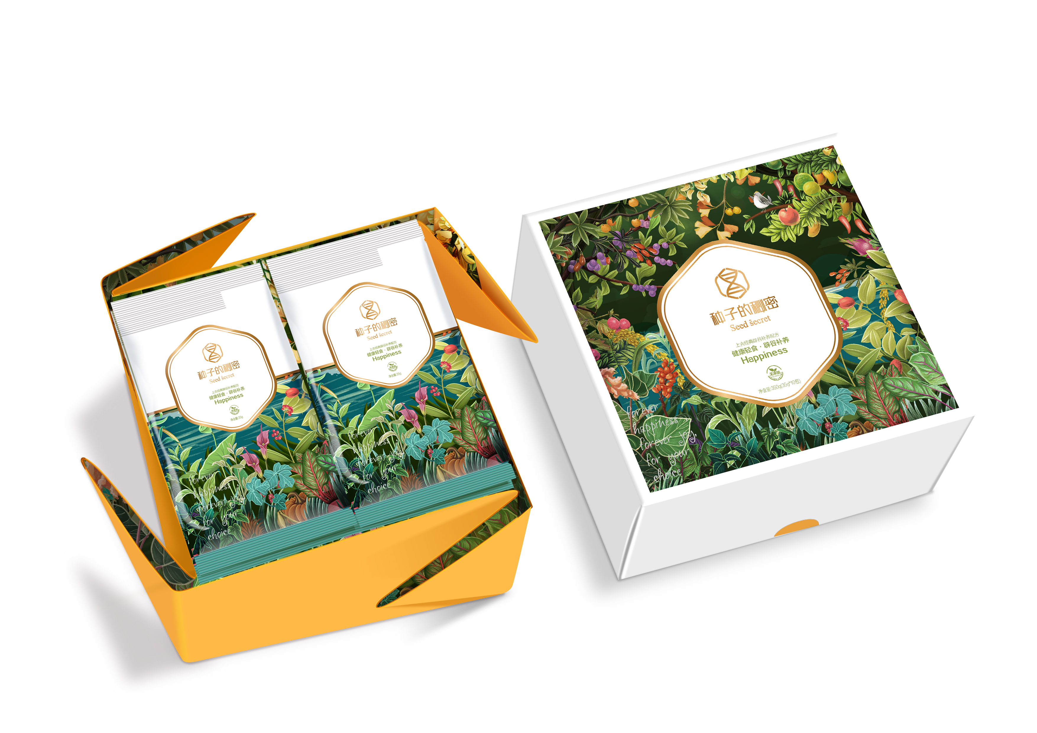 關(guān)于“種子的秘密”包裝設(shè)計,緊隨品牌定位和情懷。將內(nèi)涵與時尚結(jié)合,將形與神交融,將理念與視覺貫通。