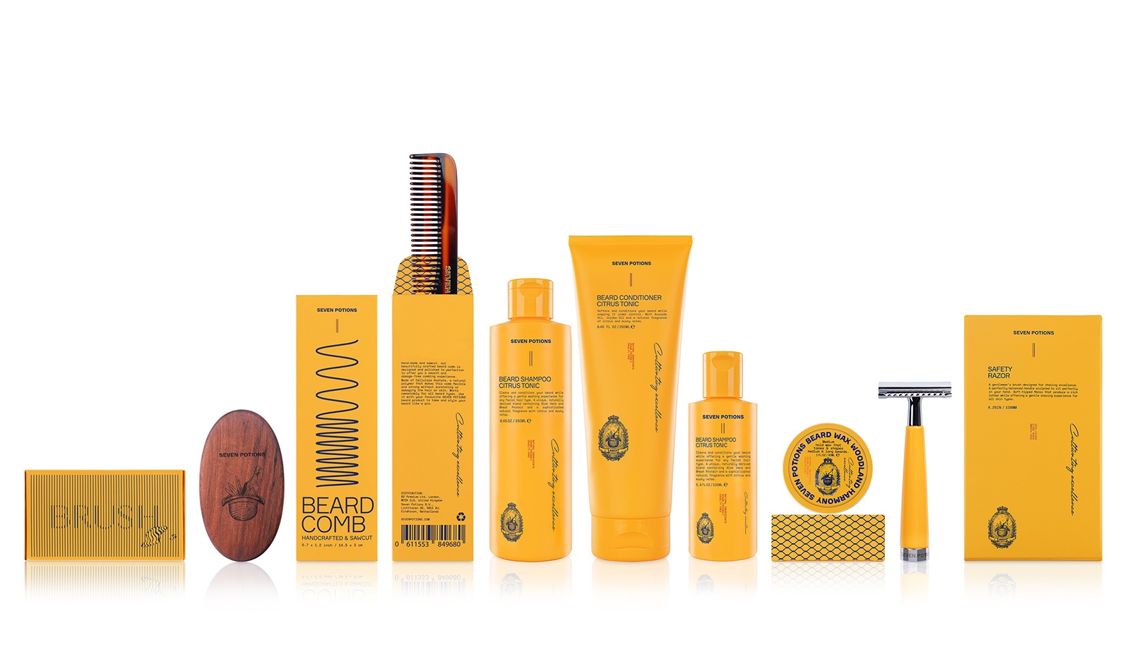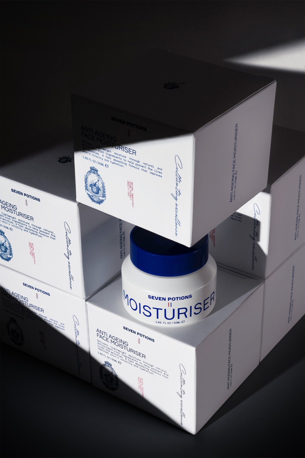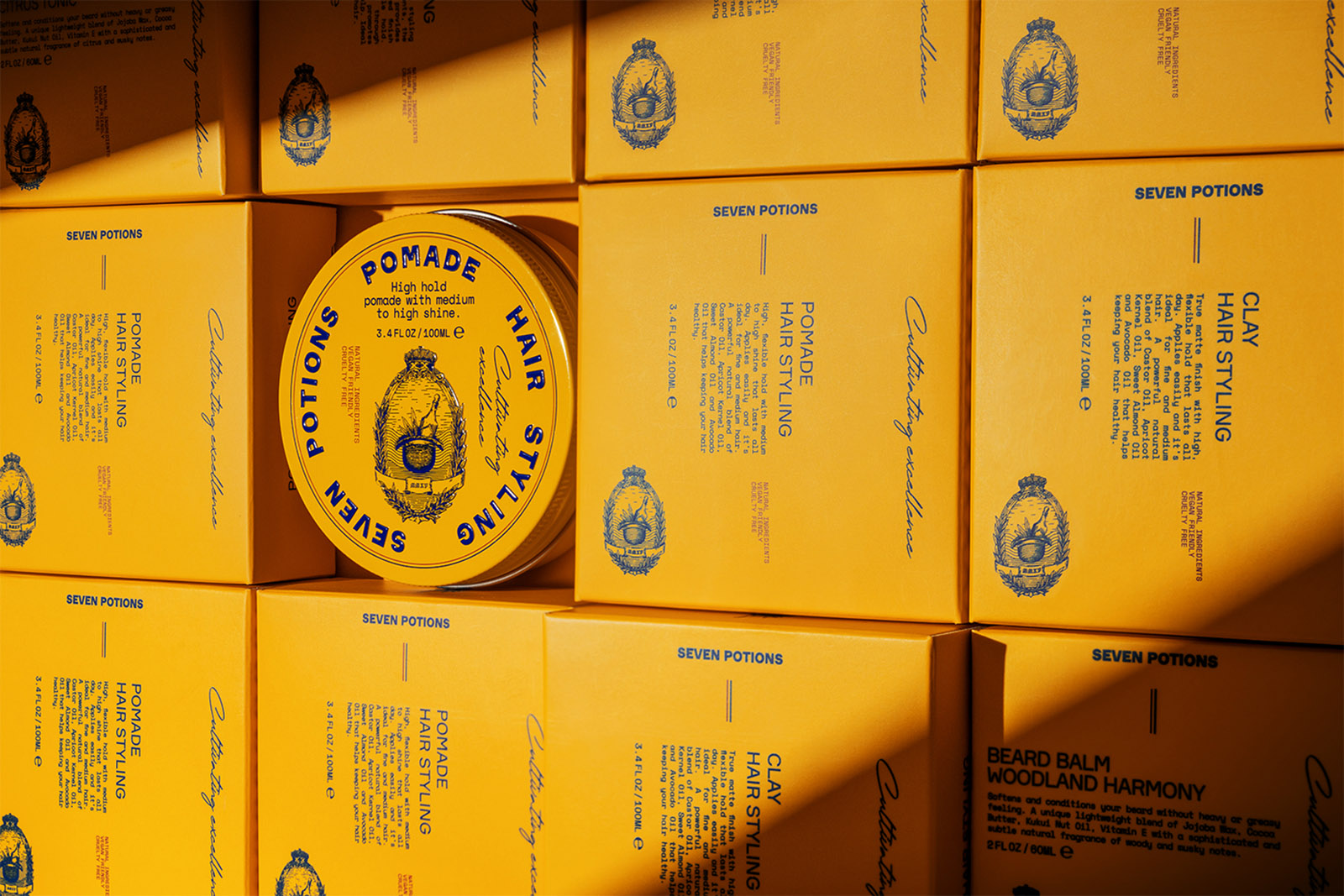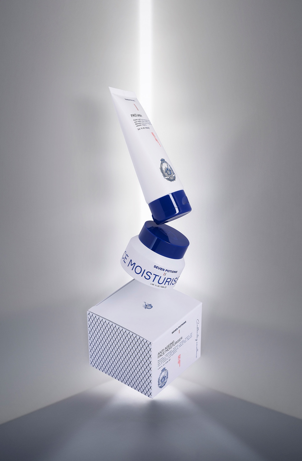 Seven Potions是一個總部位于倫敦的品牌,為現(xiàn)代紳士提供美容產(chǎn)品。當包裝設計師在設計他們的視覺語言和包裝時,努力追求真實性和專業(yè)性。品牌設計師設計了一個標志,散發(fā)出該品牌獨特的故事,抓住了古典與現(xiàn)代之間的平衡。該符號的靈感來源于定義英國歷史的標志,而版式則與現(xiàn)代保持聯(lián)系。