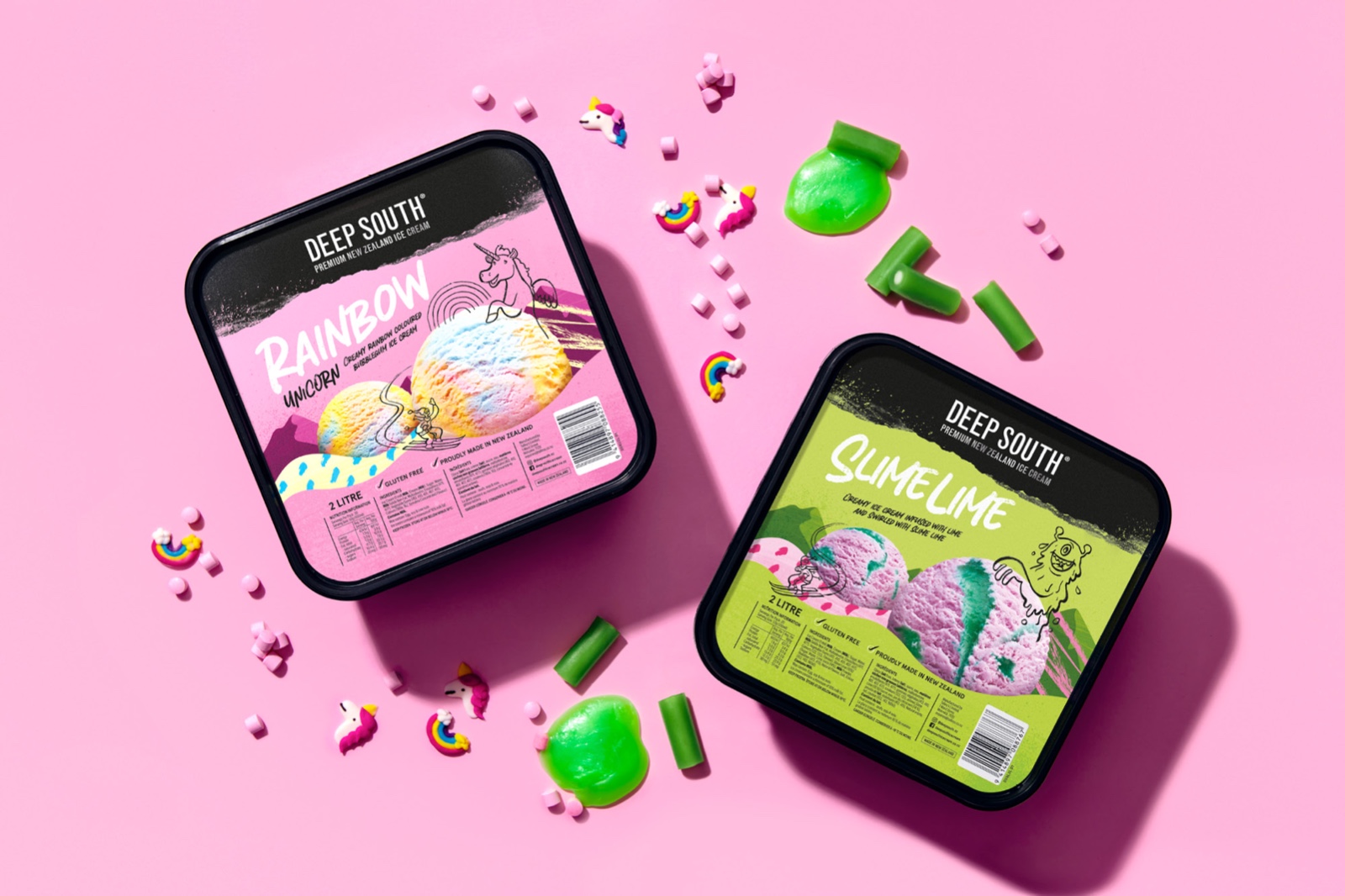 Deep South冰淇淋于1978年在新西蘭南島成立,現(xiàn)已成為一個(gè)標(biāo)志性品牌,擁有多種口味和風(fēng)格,迎合了廣大消費(fèi)者的需求。它目前的設(shè)計(jì)風(fēng)格已經(jīng)成為一種標(biāo)志性的,雖然有些笨重,但帶有圖片明信片南島風(fēng)景的風(fēng)格。這些說(shuō)明了該國(guó)的起源和自豪感,但在傳達(dá)包裝信息和靜音顏色編碼方面往往很有挑戰(zhàn)性。