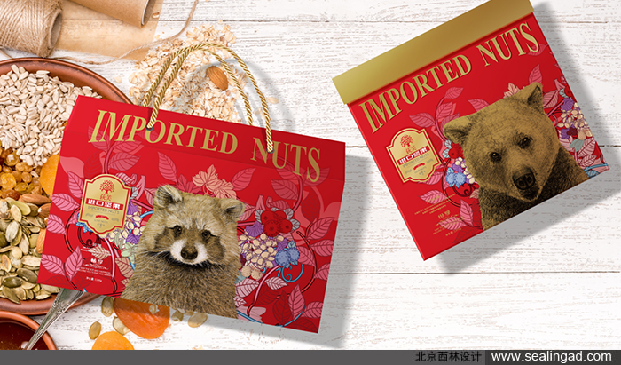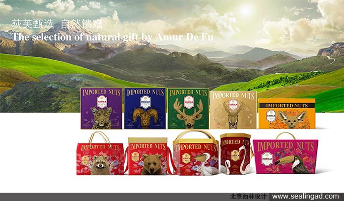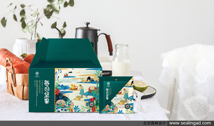 通過堅果與卡通動植物場景結(jié)合,給包裝創(chuàng)意營造生態(tài)自然輕松感
