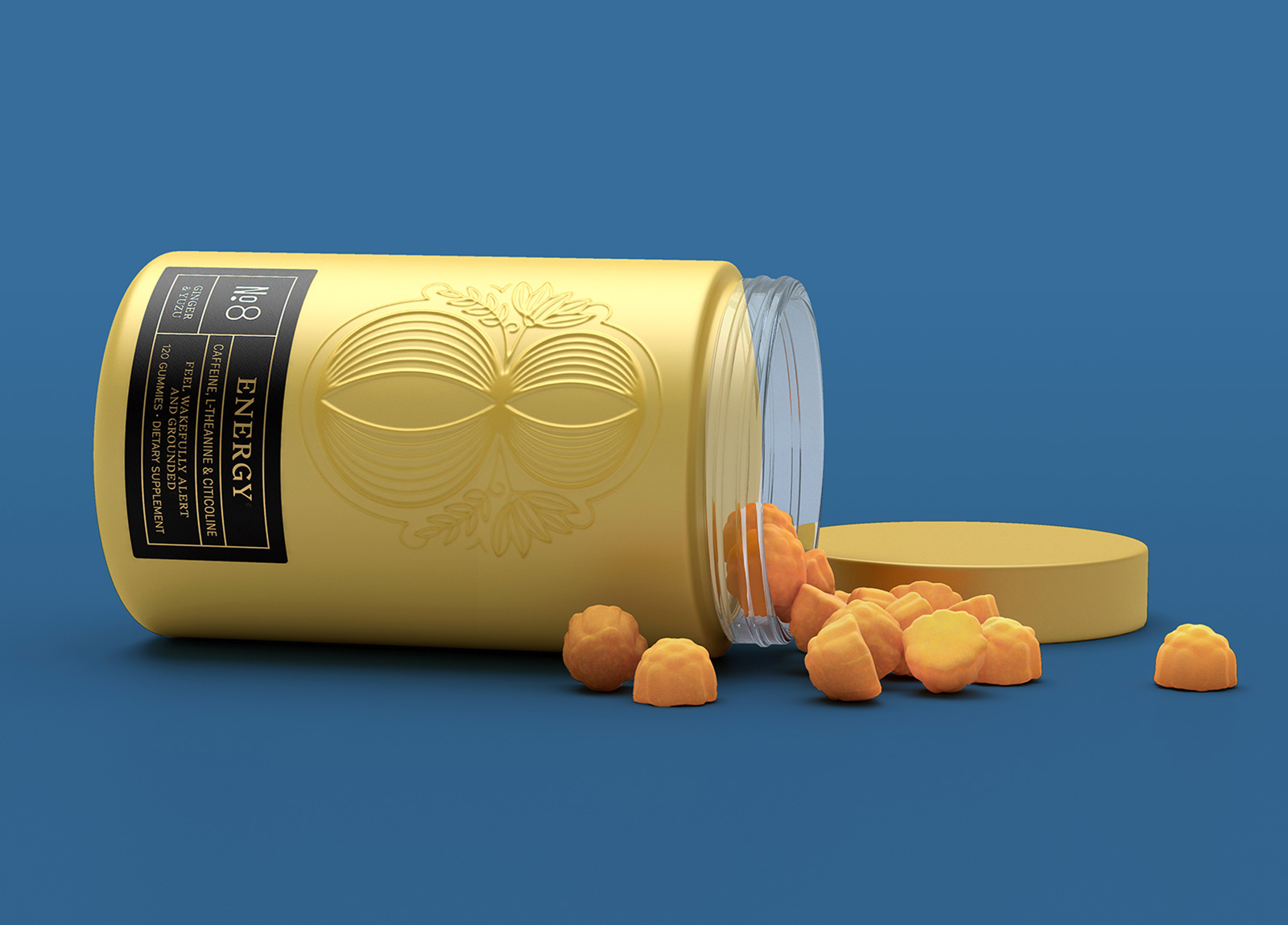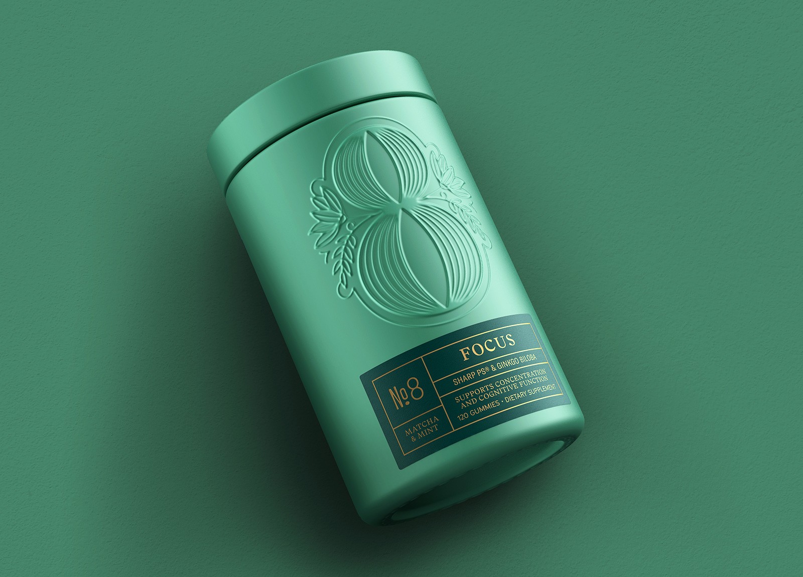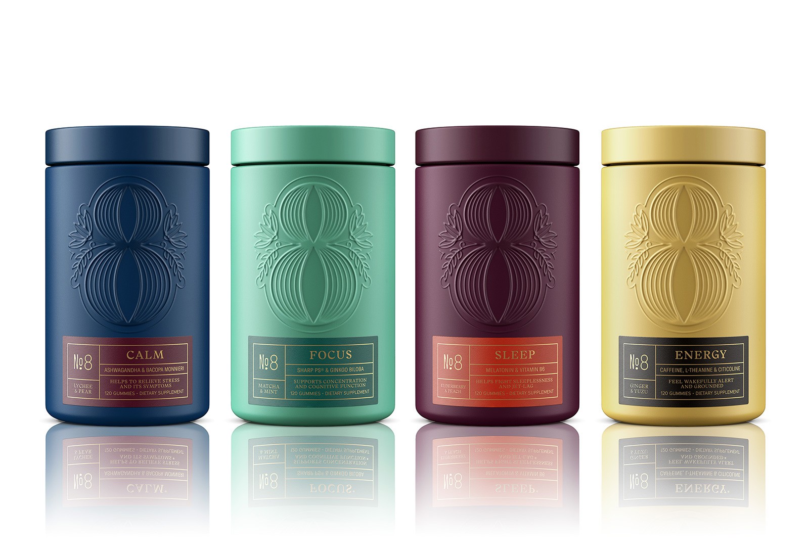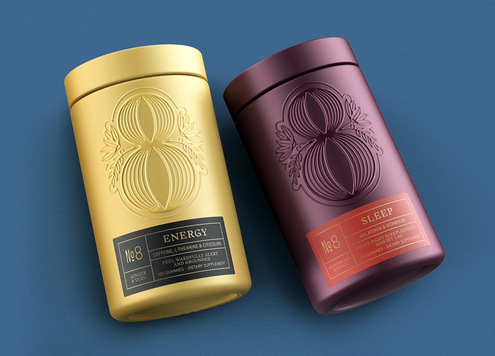 為了捕捉這種精神,我們創(chuàng)建了一個(gè)說(shuō)明性的數(shù)字 8 標(biāo)志作為品牌的核心。該標(biāo)記以植物元素和振幅線為特色,形象化了益智補(bǔ)充劑可以為健康和專(zhuān)注的生活方式帶來(lái)的好處。干凈的包裝采用帶有浮雕徽標(biāo)的粉末涂層玻璃罐,為這個(gè)高檔品牌增添了精致的感覺(jué)。