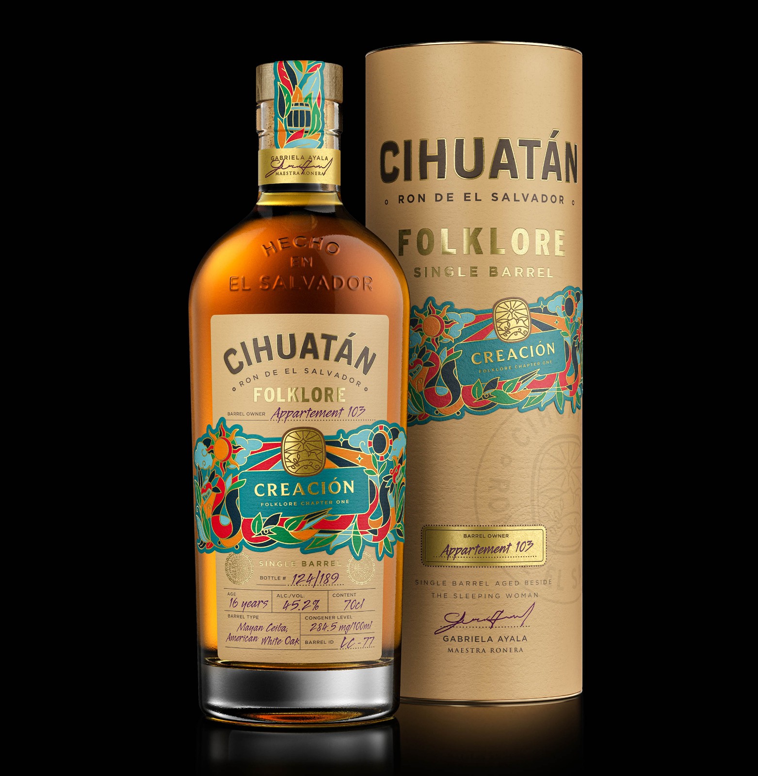 經(jīng)過長(zhǎng)期合作,Cihuatan Rums 與 Appartement 103 合作,為世界各地的鑒賞家和收藏家制作了一系列超優(yōu)質(zhì)的單桶酒:Cihuatán Folklore。