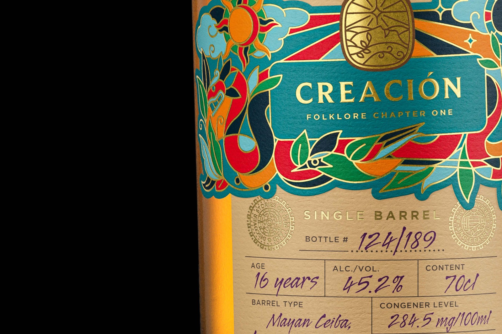 充滿活力的彩色插圖和熱箔的使用立即將 Cihuatan 的視覺識(shí)別與新的 Folklore 系列聯(lián)系起來。它與核心標(biāo)簽及其精心制作的展示形成鮮明對(duì)比,具有手寫技術(shù)信息,包括瓶號(hào)、年份、桶型和所有者姓名,以個(gè)性化每一瓶。