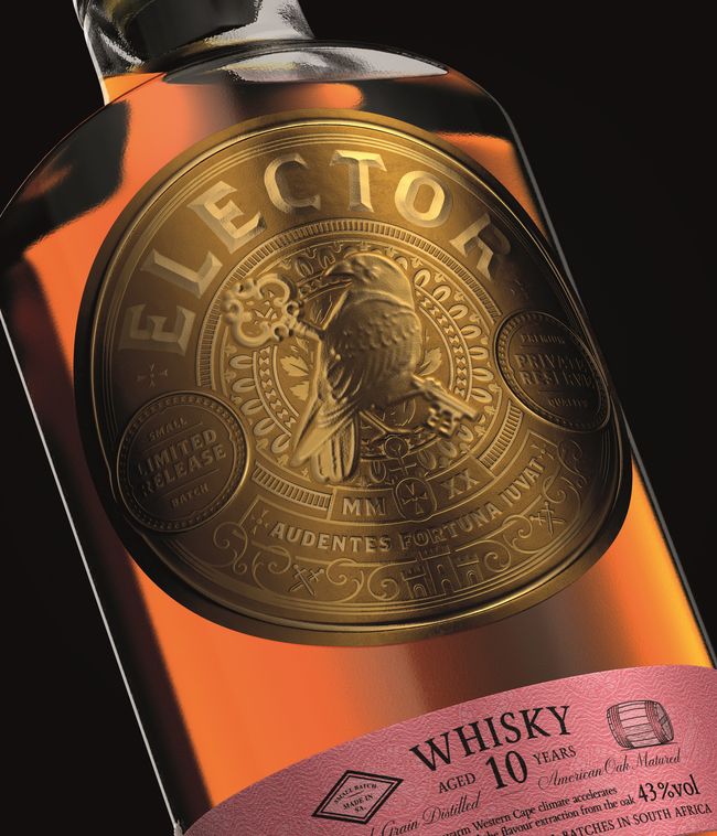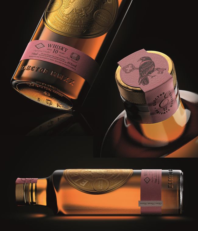 從克魯格朗硬幣中汲取靈感,該標簽采用了艾利丹尼森的Fasson Dull箔金FSC和Fasson棉白120g/m,并結合了數(shù)字印刷、Kurz Luxor箔燙印和平板壓花。瓶子是Estal的TR Hotrod 70cl型號,瓶蓋也是由Estal提供的。