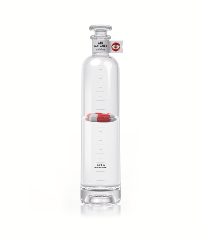西班牙機構Supperstudio的杜松子酒理念基于負責任的飲酒。當瓶子排空時,分級瓶(Estal的Philos模型)內的救生圈下降?!帮L格化的瓶子形狀和高度為展示測量標記以及里面的救生圈提供了一個理想的平臺。”