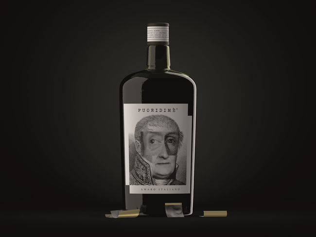 意大利葡萄酒和烈酒設計機構斯帕齊奧·迪保羅(Spazio Di Paolo)選擇以“意大利天才”為主題,以及“fuori Di me”的概念,也就是開箱即用的思維。“該項目的主要概念是創(chuàng)造一種能激發(fā)好奇心和與包裝互動的語言。”事實上,正面是幾層Fasson Soft Touch White FSC(Avery Dennison)的拼貼,消費者可以將其移除并重新定位。