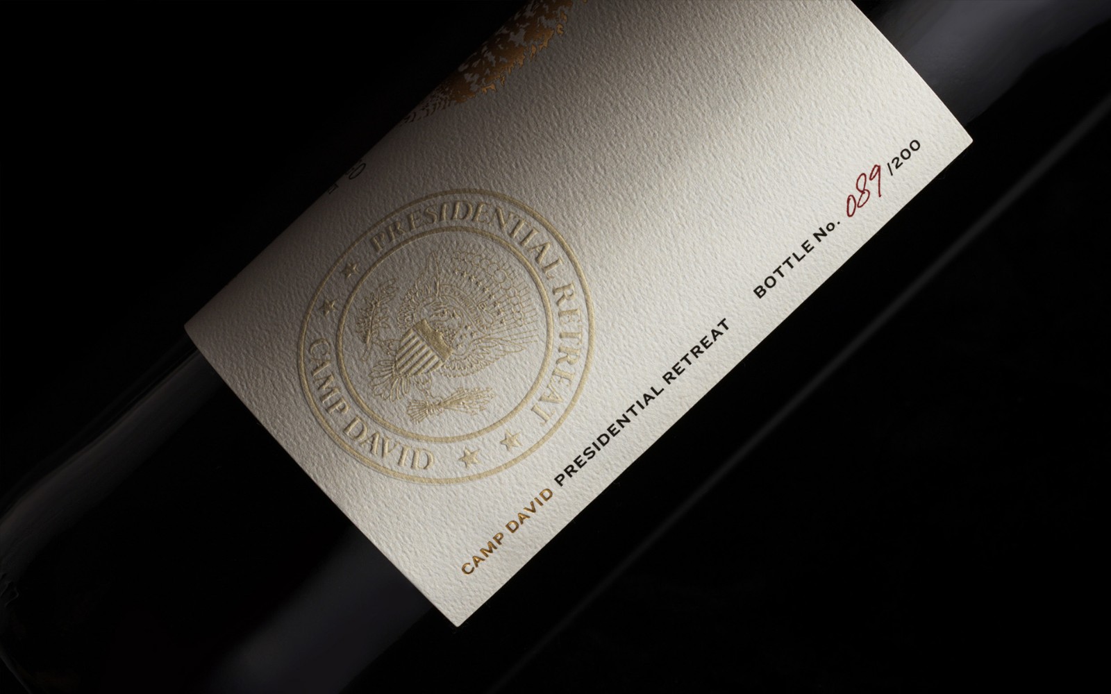 奢華的天然毛氈標(biāo)簽具有優(yōu)雅的金箔觸感,包括 Camp 著名標(biāo)記的木刻插圖、正面和中心。每個(gè)限量發(fā)行的瓶子都印有官方的戴維營總統(tǒng)度假勝地印章,按順序編號(hào),頂部是品牌天然軟木塞和鋁箔膠囊,并裝在一個(gè)帶有火烙印的濃縮咖啡色木盒中。