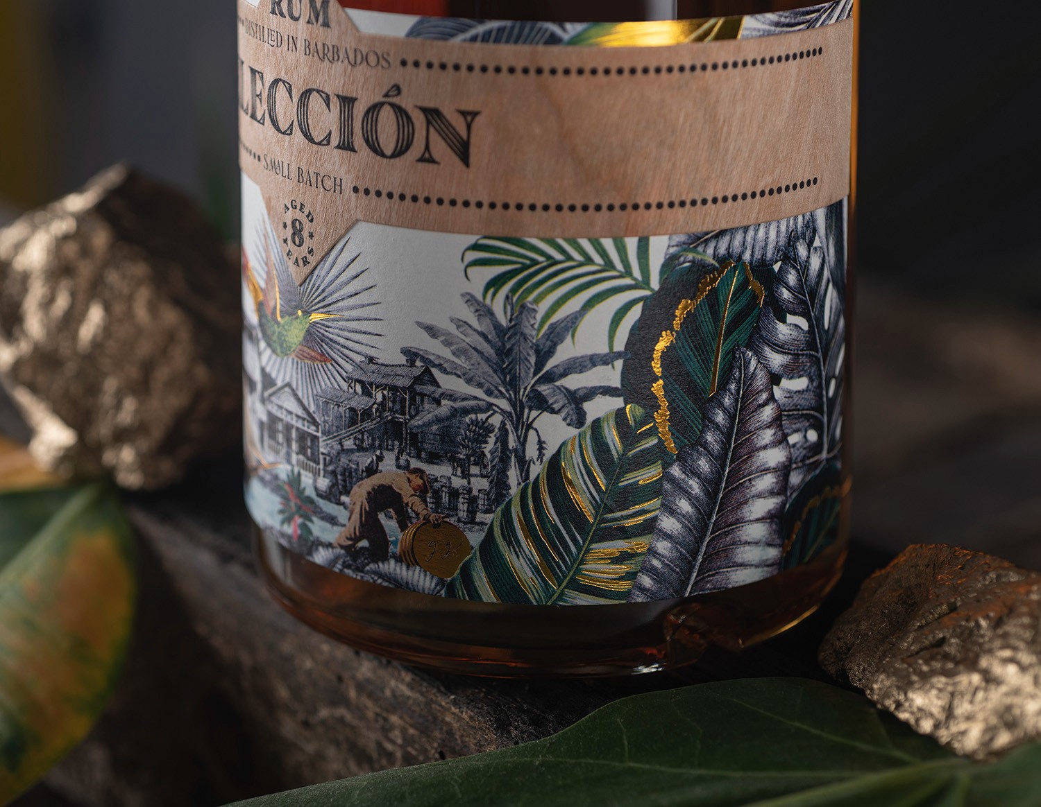 為Ron Elección的意大利客戶設(shè)計(jì)包裝。這種朗姆酒在巴巴多斯蒸餾,但在阿瑪龍酒桶中陳釀,這是意大利的典型做法。