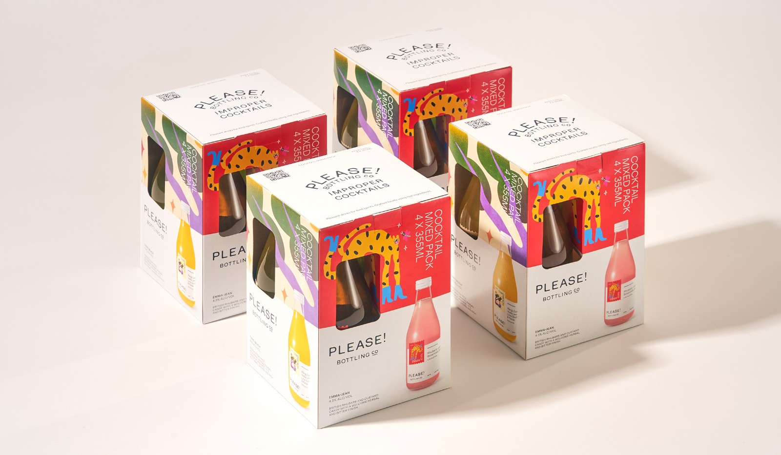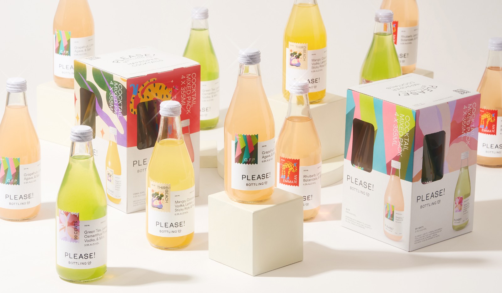 請Bottling公司來找我們,想做一些非常不同的事情。這些不是一般的雞尾酒,所以他們希望品牌能夠反映這一點。它需要感覺有趣、巧妙和好玩。外觀和感覺需要提升,但要平易近人,令人愉快,但不要說教。