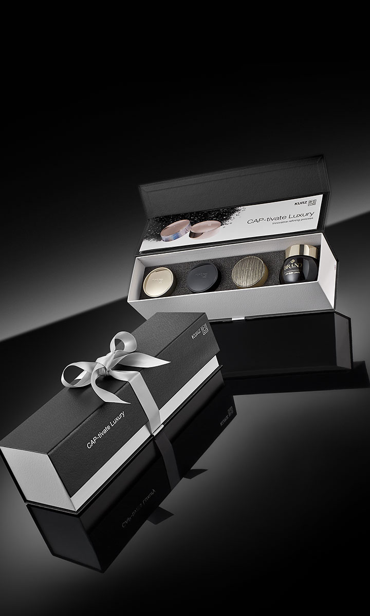 CAP-tivate 是一種提供多種替代方案的技術。它包括使用浮雕和淺浮雕進行裝飾的可能性,以及能夠通過復雜設計裝飾甚至不規(guī)則表面的優(yōu)勢,從而獲得具有出色美感和觸覺沖擊力的結果。 此外,它還允許用多個圖形裝飾瓶蓋。除了 IMD 頂部之外,還可以在稍后使用滾燙印進行瓶蓋的外圍裝飾,并用不同類型的圖形和顏色。而且,在兩個不同時間制作的兩種裝飾不會有任何連接點,由于臨時創(chuàng)建的工具,效果將是無縫的。
