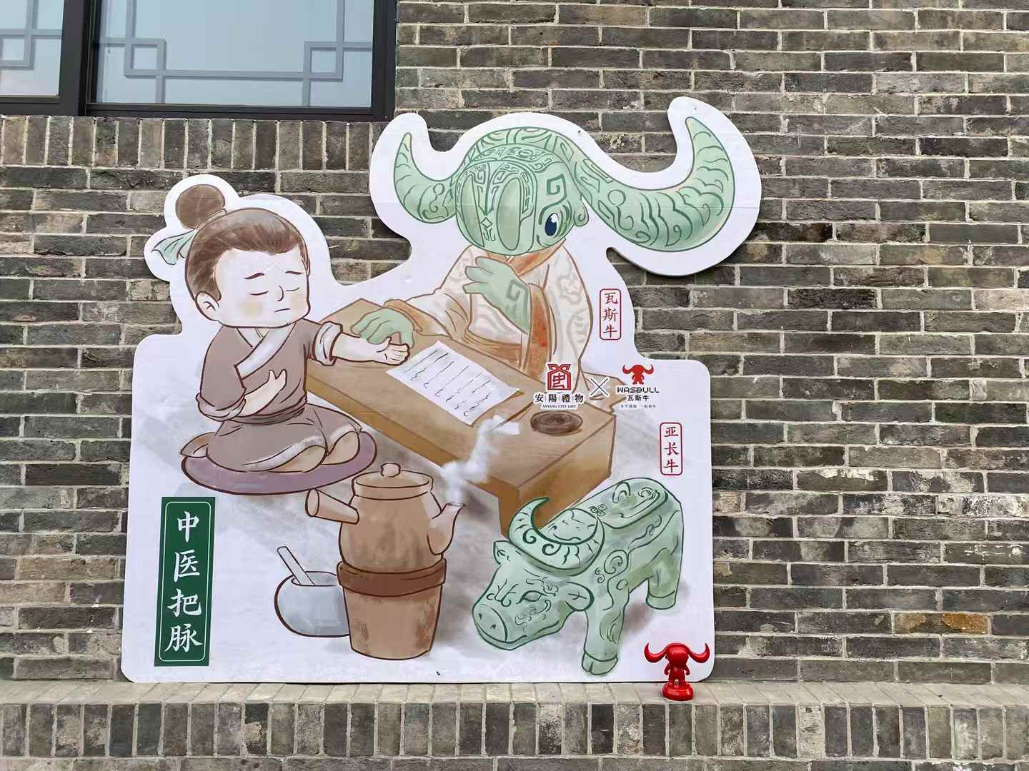 ?甲骨文藥方墻?:將殷墟出土的疾病卜辭與《黃帝內(nèi)經(jīng)》金句結(jié)合,刻于亞長牛造型的青銅浮雕墻,掃碼可獲“甲骨文養(yǎng)生手賬”;