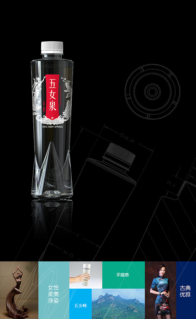 呈現(xiàn)純生態(tài)自然之水,是”五女泉“的宗旨,這里沒有一點城市自來水,全部取自五女峰地底深層之水,我們則賦予了她一個生動形象。