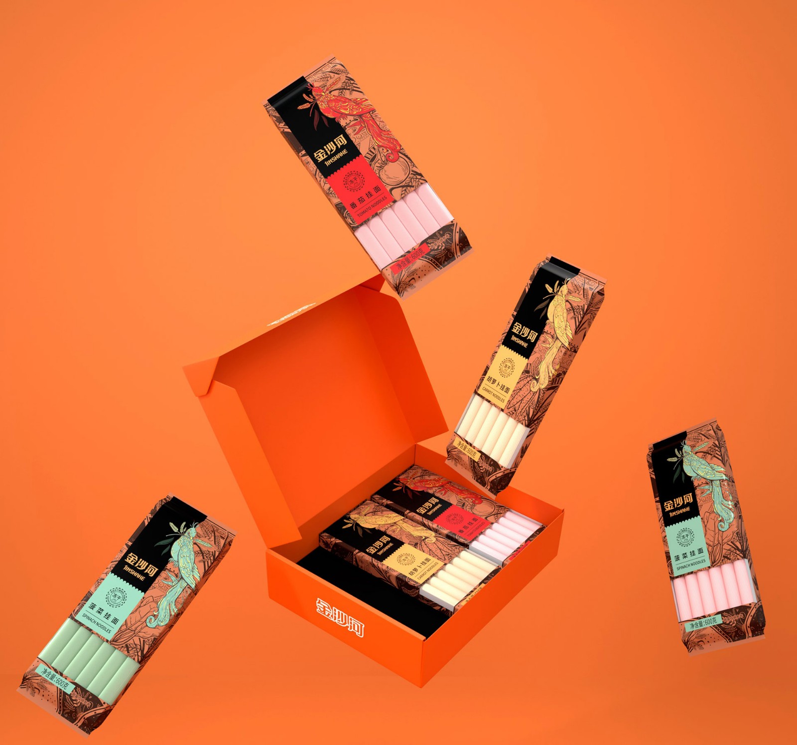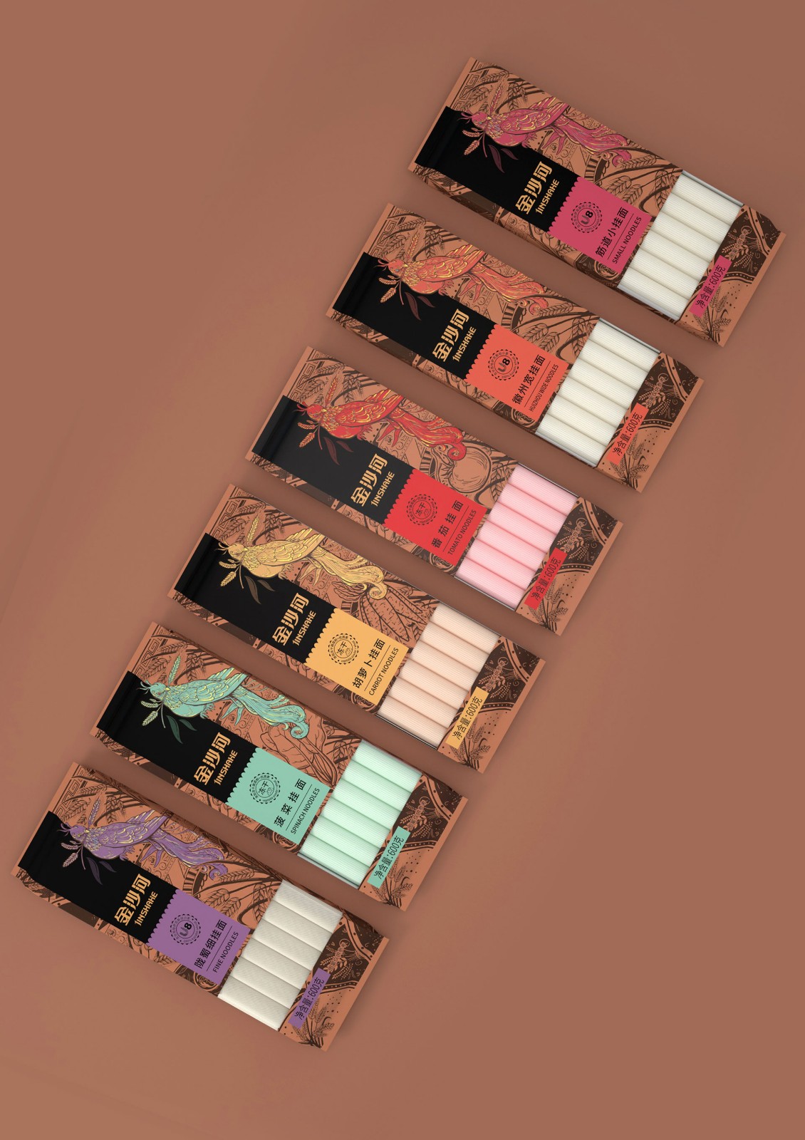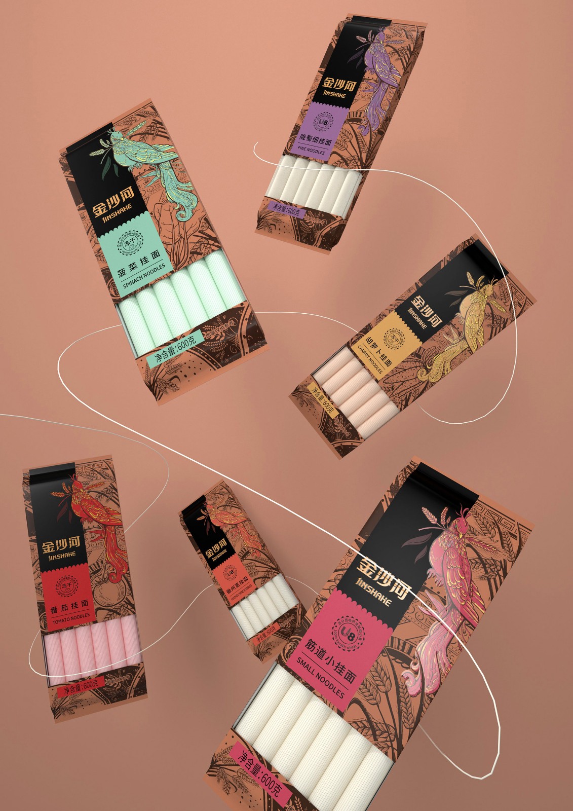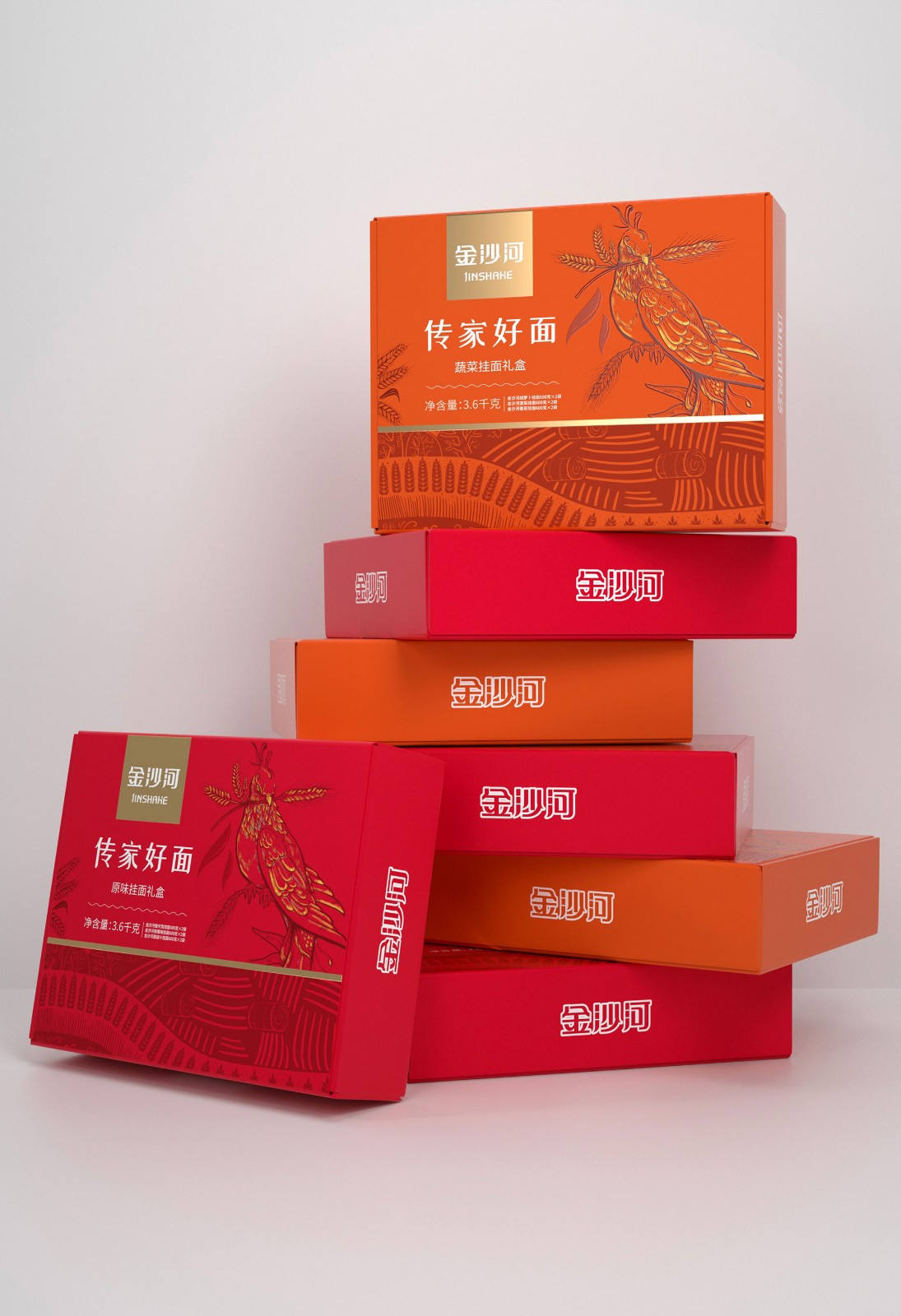 金沙河掛面包裝根據(jù)口感用多色彩展示豐富包裝色彩
