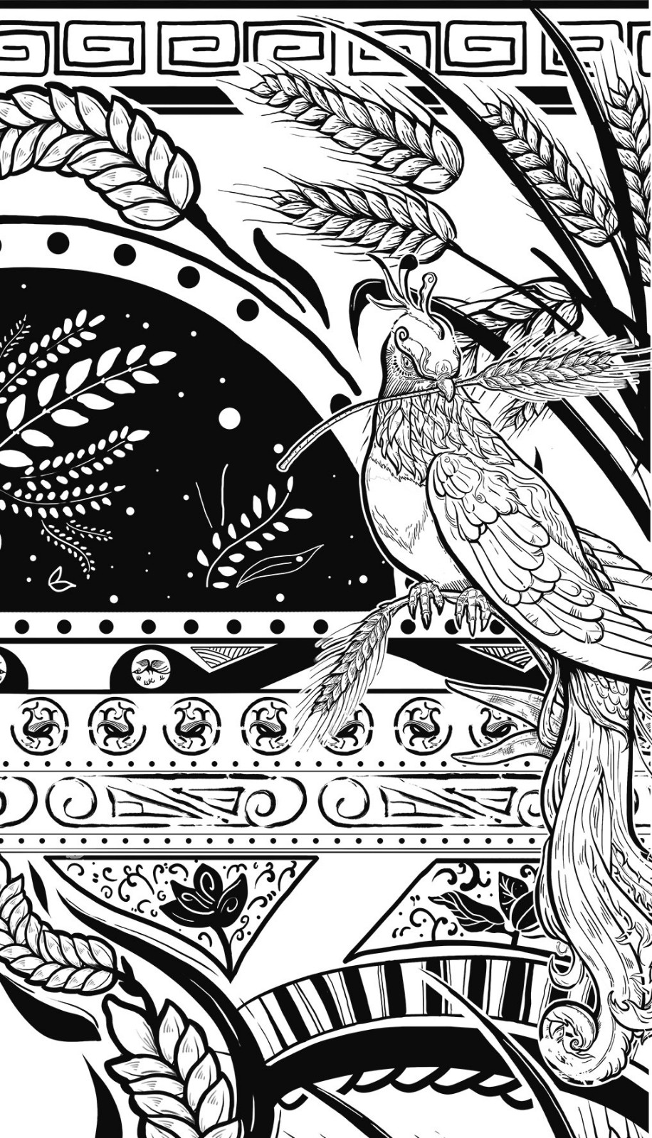源自古老圖騰信仰的創(chuàng)意,甲骨文中“麥”源自“玄”其行如玄鳥展翅含穗而飛?!鹅`性甲骨》注義:“麥自天來,自古即有‘天麥雨’之稱,寓意富足豐收歡悅?!?/p>