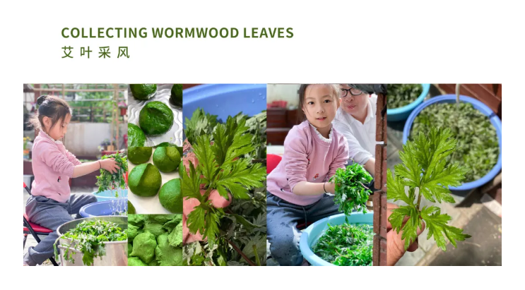 我們驅(qū)車到郊外采了許多艾葉草,洗凈拍照,并制作了青團(tuán)品嘗。