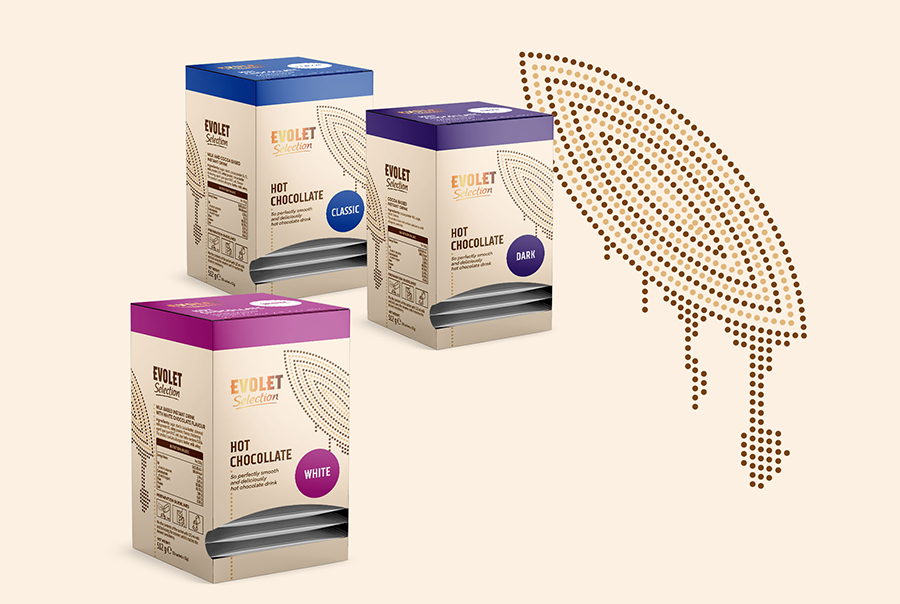 Evolet的選擇范圍是與口號(hào)“選擇與激情”一起開發(fā)的。關(guān)心茶樹生長(zhǎng)的農(nóng)民的熱情。我的創(chuàng)造性解決方案是向消費(fèi)者展示善良的根源,葉,不是客觀化的,而是藝術(shù)的,葉子給你的心情,愛和對(duì)茶的熱情。這個(gè)想法是為了表達(dá)喝一杯好茶的真實(shí)感覺。在熱巧克力飲料系列中,茶葉被純可可豆所取代。