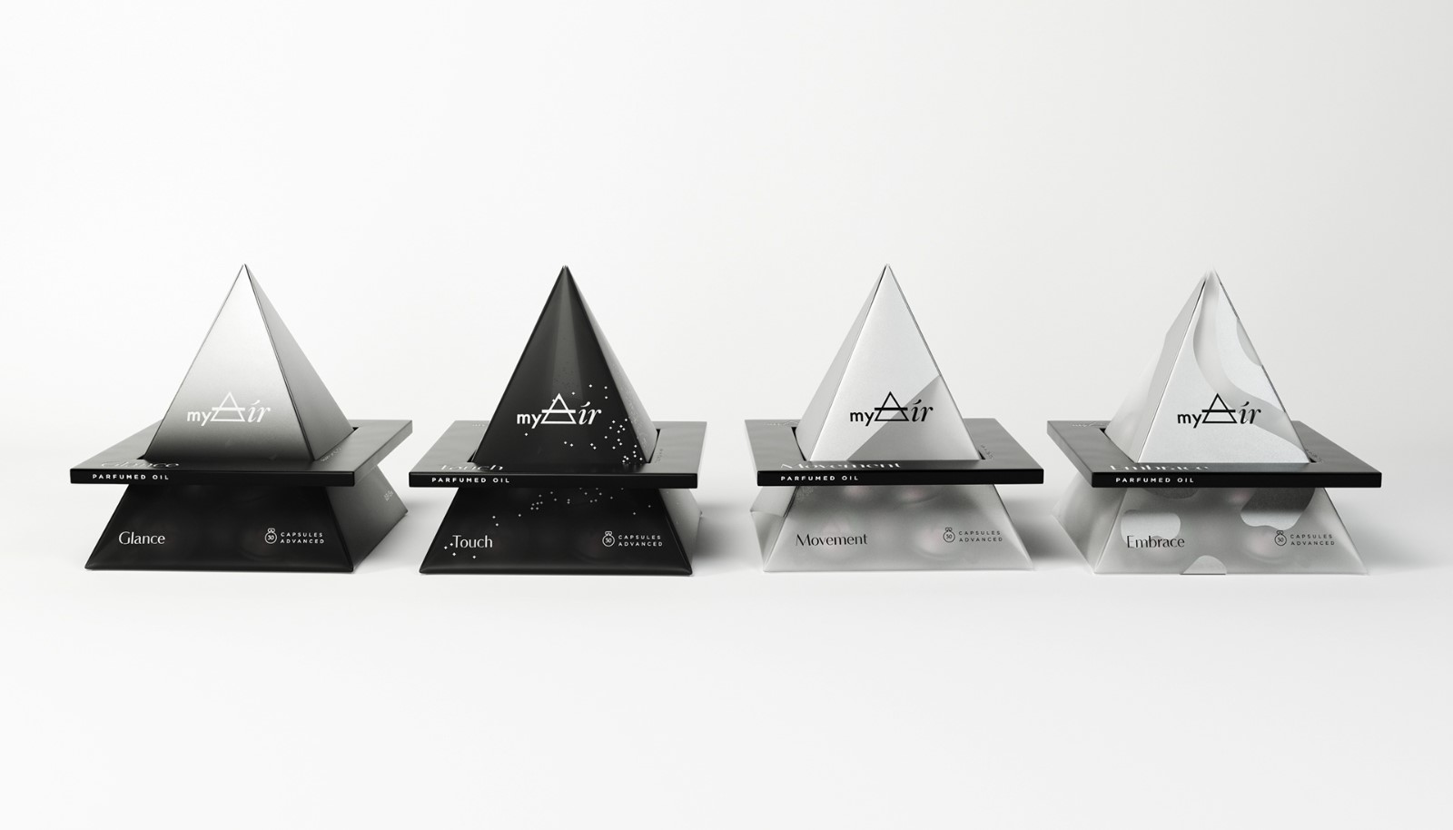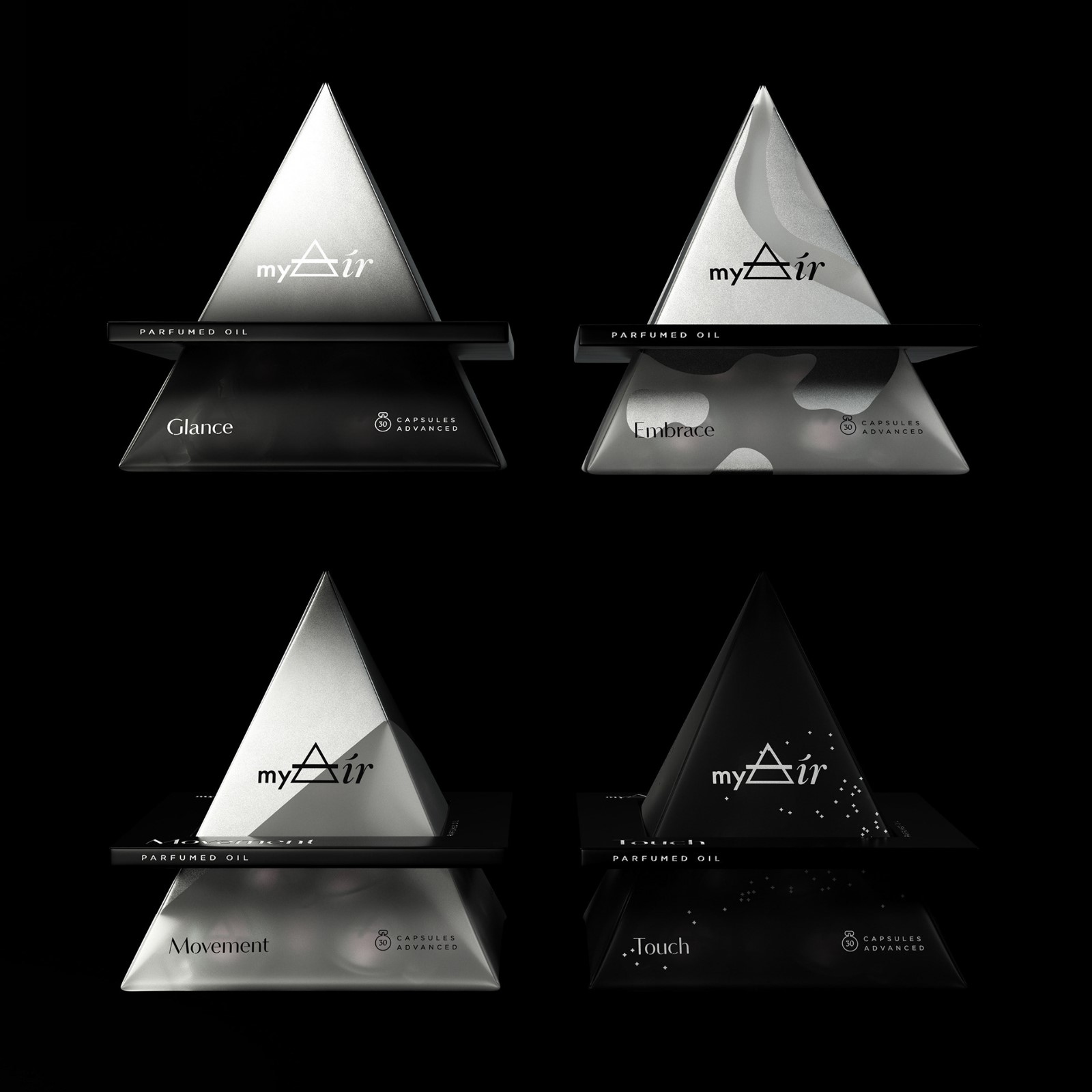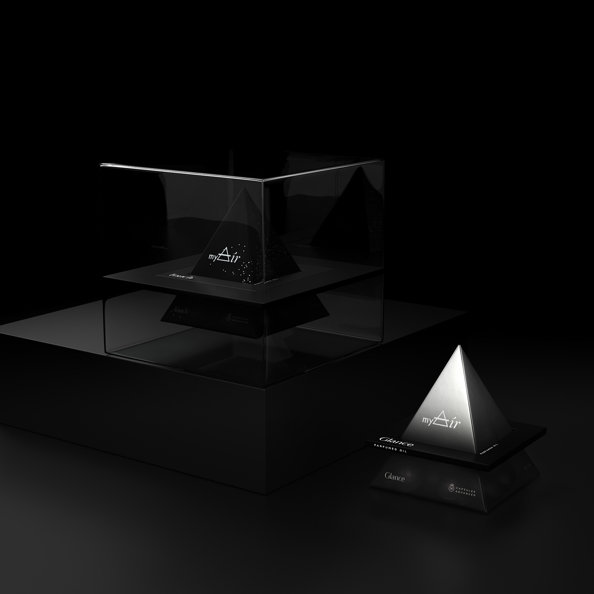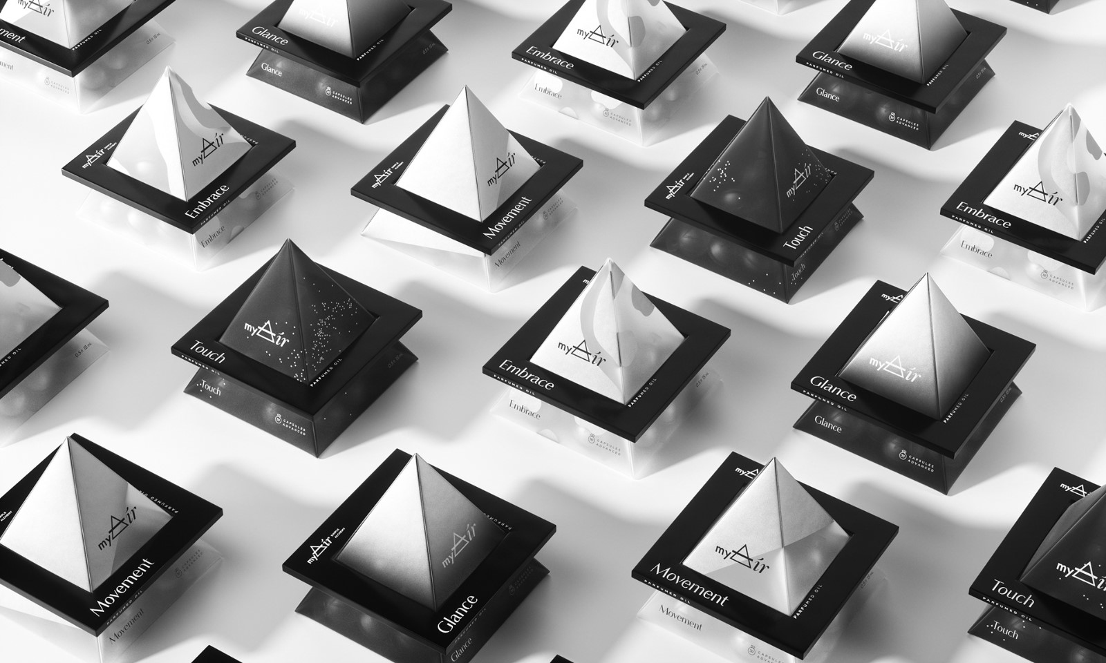 十字三角形象征煉金術(shù)中的“空氣”元素。標(biāo)志是存在于標(biāo)志,它也已轉(zhuǎn)化為金字塔的建設(shè)與膠囊。它使香水的概念,作為個(gè)人的空氣,完全體現(xiàn)在項(xiàng)目的每一個(gè)細(xì)節(jié)。