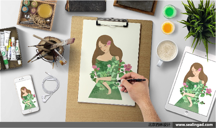 插畫采用水彩風(fēng)格,通過人物與植物自然親近的結(jié)合,傳達出舒適、健康、自然的視覺形象。