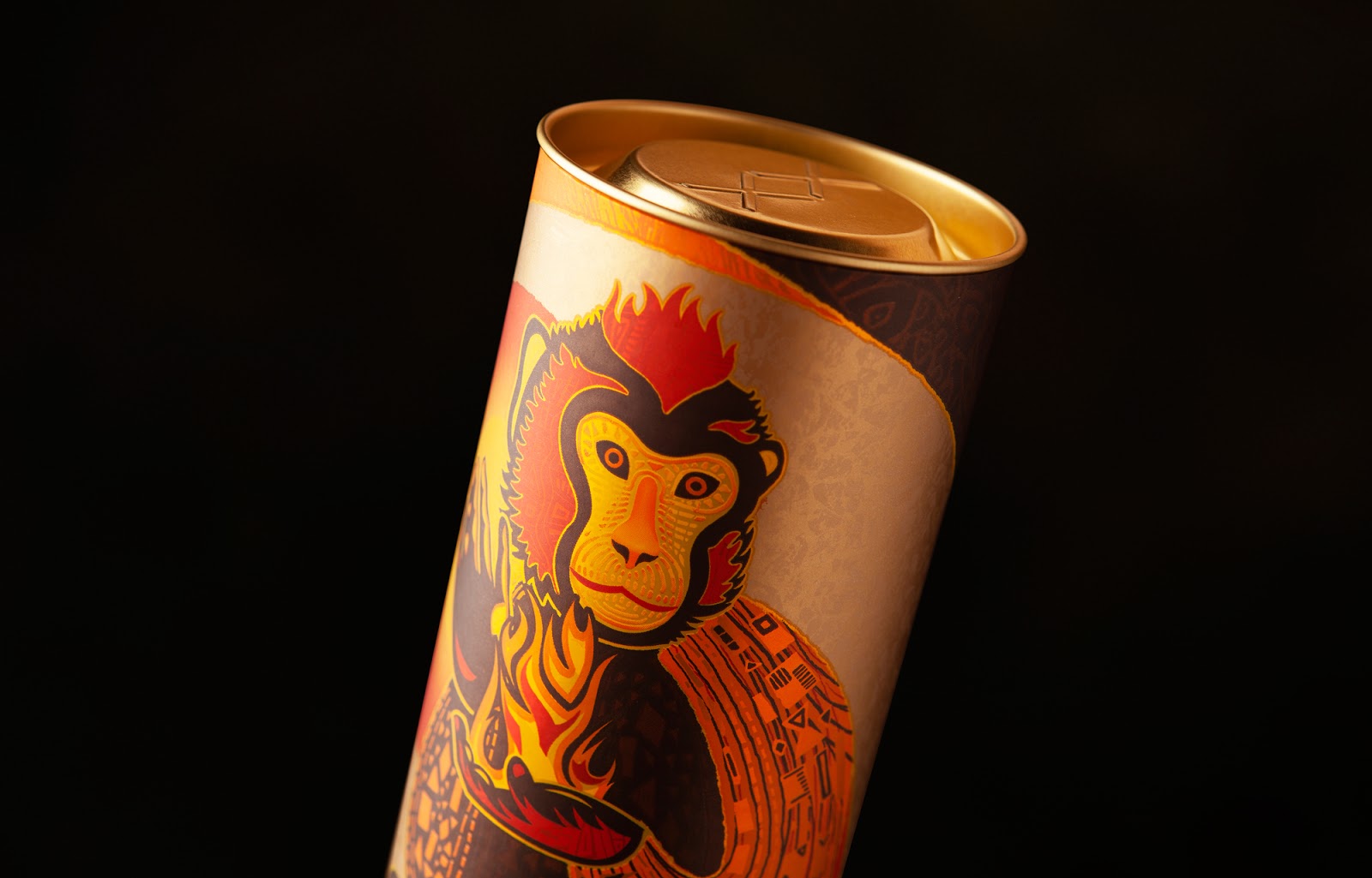 通過采用層壓技術(shù)在金屬箔上進行復(fù)雜的組合印刷,可以實現(xiàn)帶有虹彩裝飾圖案的猴子的圖像。結(jié)果,該品牌收到了一個獨特的包裝,該包裝在零售中脫穎而出,在通過交易架時具有啞光和光滑的表面,消費者在節(jié)日餐桌上擁有明亮而時尚的新年“戀物癖”。