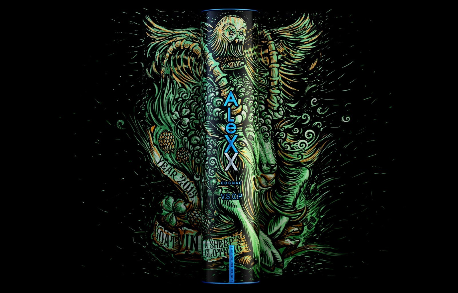 AleXX山羊在山羊的衣服是著名的烏克蘭白蘭地的限量版包裝設(shè)計,致力于中國日歷上的2015年綠色山羊年。
