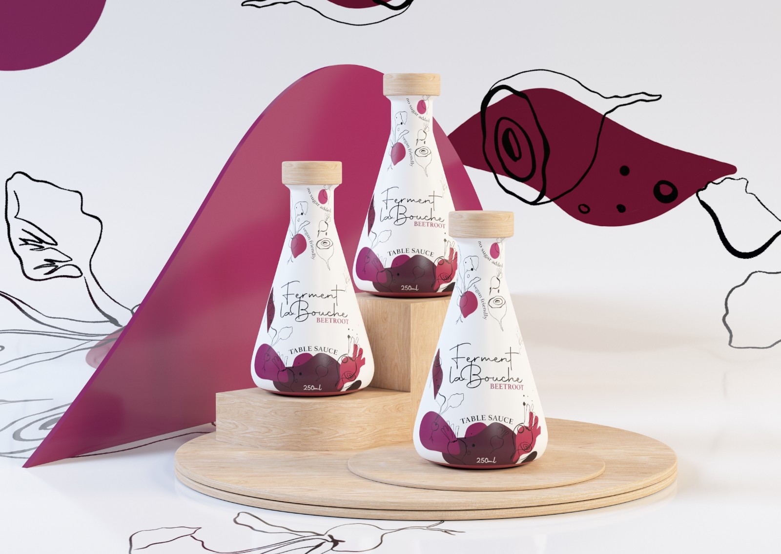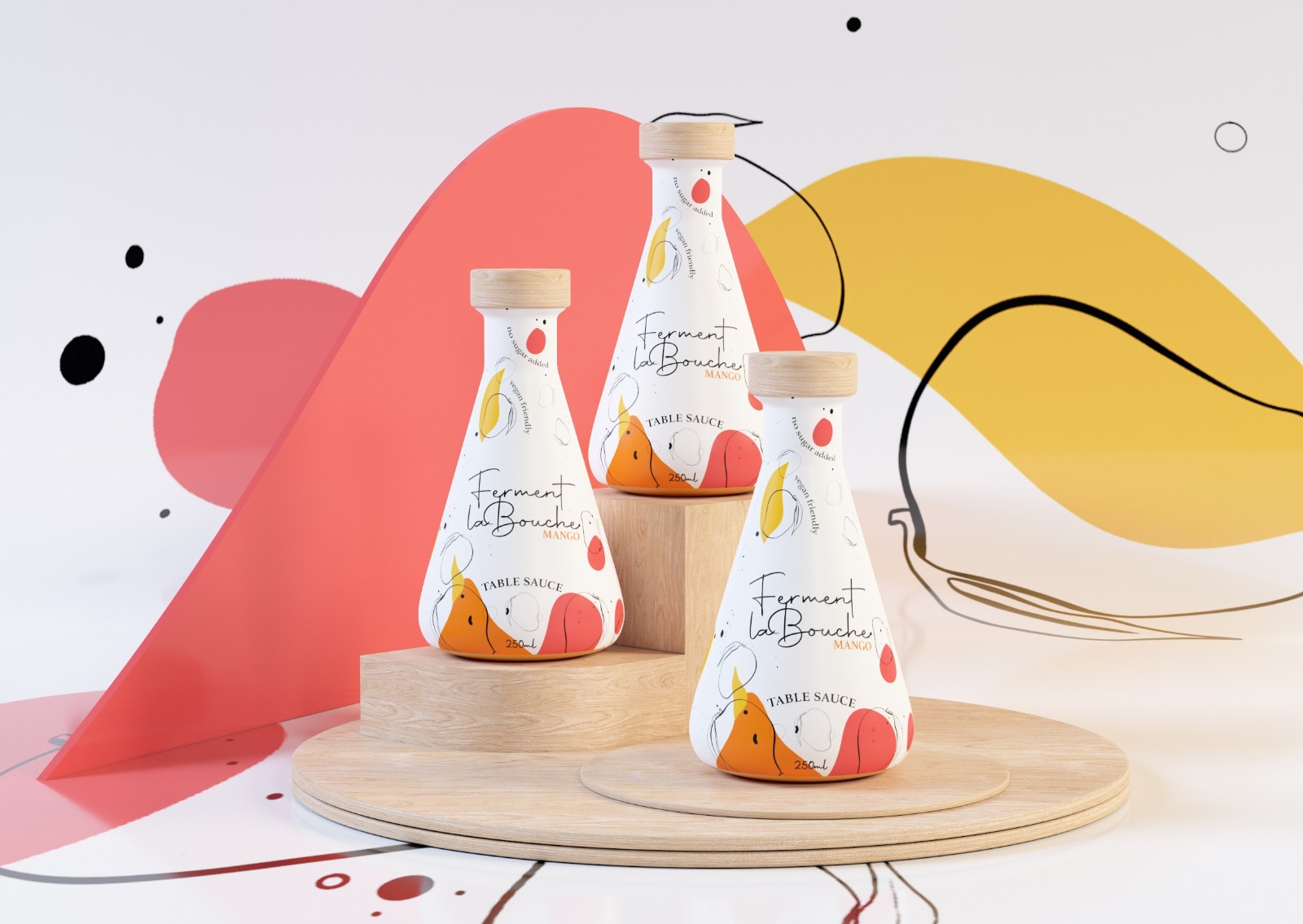 我們想擺脫利用該品牌的中東傳統(tǒng),而該傳統(tǒng)會削弱發(fā)酵過的概念,使其黯淡無光,并將其標記為“世界食品”。Amba在中東和印度(其中更像是酸辣醬)而聞名。為了將這個范圍定位為新事物和不同事物,并為了使我們能夠擴大規(guī)模,添加新的風味SKU甚至是新范圍,我們不得不離開Amba并創(chuàng)建全新的品牌概念。顯微鏡引導我們朝著更清潔的設計方向發(fā)展,增加了色彩的飛濺以闡明風味,同時保持插圖經(jīng)典,近乎鄉(xiāng)村。我們希望品牌能夠巧妙地叛逆;畢竟,它正在做一些新的事情。因此,商標“ ferment la bouche”提供了簡單的文字提示,