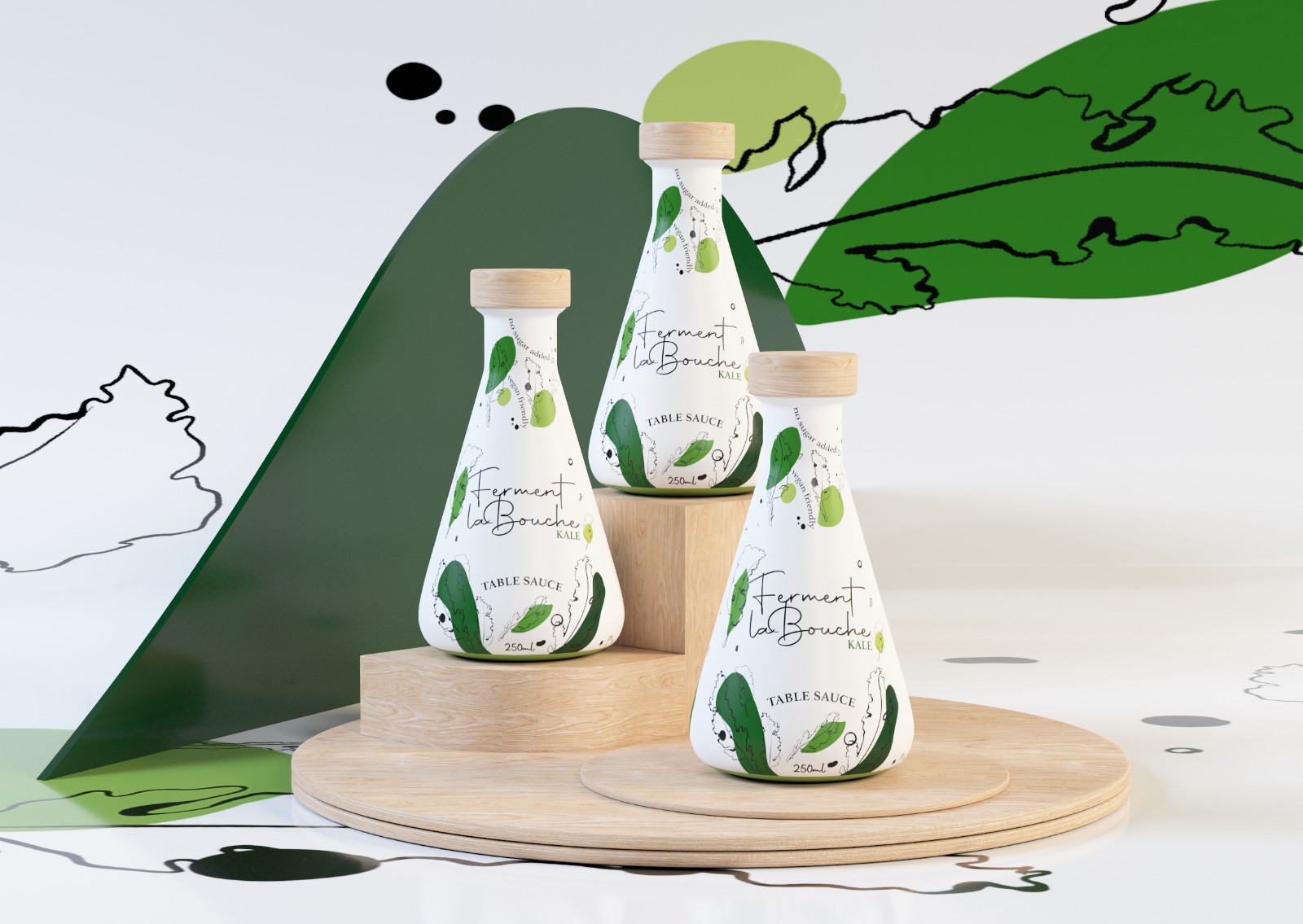 我們針對該系列的設計靈感來自“通過顯微鏡”的概念,窺視了不喜歡腸道的好細菌的世界,展示了煉金術般發(fā)酵過程中的運動感–冒泡,變形,變化并轉移到將生料變成舌頭發(fā)酵醬上的奇妙可口風味。