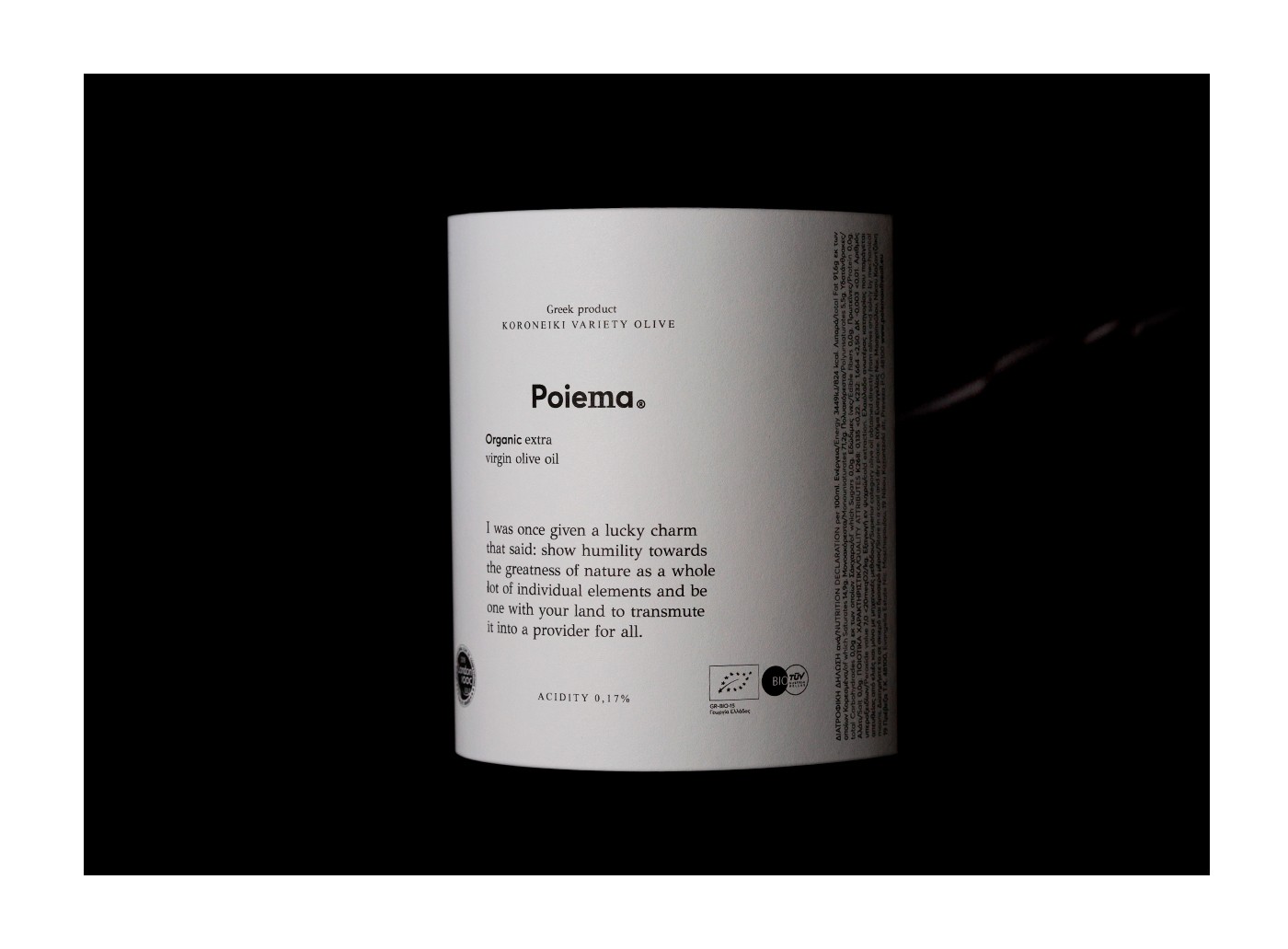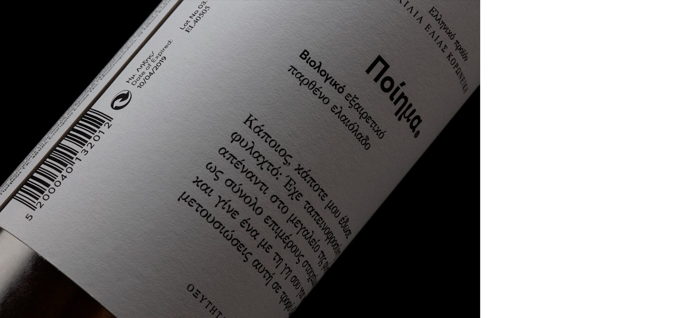 標(biāo)簽:有機(jī)特級(jí)初榨橄欖油 包裝設(shè)計(jì)和命名 Poiema 金屬錫罐 標(biāo)簽 膠版印刷 包裝基材 希臘橄欖油包裝設(shè)計(jì) 品牌產(chǎn)品包裝設(shè)計(jì)公司