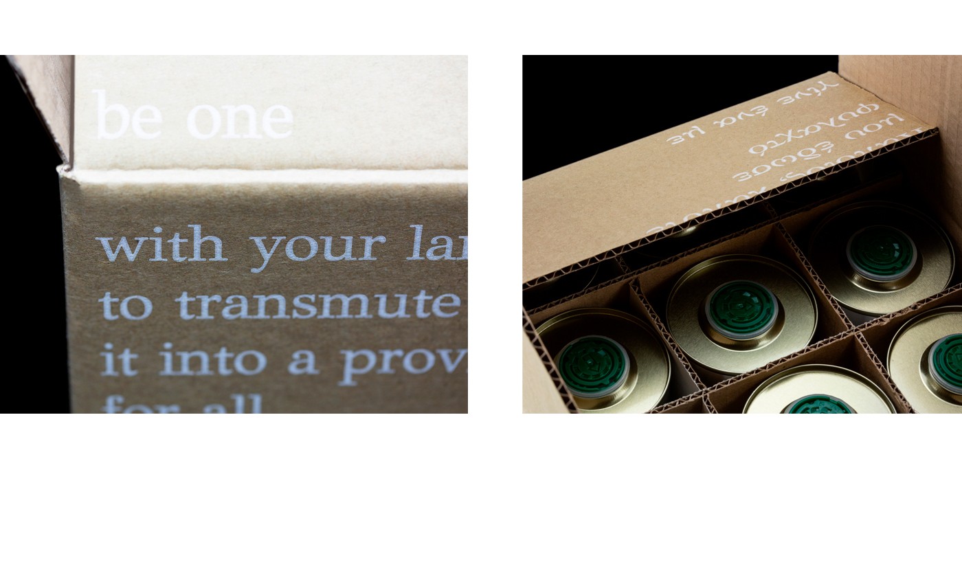 受希臘相關(guān)文獻(xiàn)參考的影響,我們最后得到了客戶(hù)寫(xiě)的一首詩(shī),這也是他關(guān)于自然和有機(jī)耕種的個(gè)人陳述。詩(shī)歌中的元素被解釋并轉(zhuǎn)化為布局。對(duì)版式進(jìn)行了相應(yīng)的處理:黑色經(jīng)典版印刷在白色吸水紙上。襯線和San Serif字母的組合表明新舊并存:特級(jí)初榨橄欖油的經(jīng)典價(jià)值與當(dāng)今使用的新生物栽培技術(shù)相吻合。