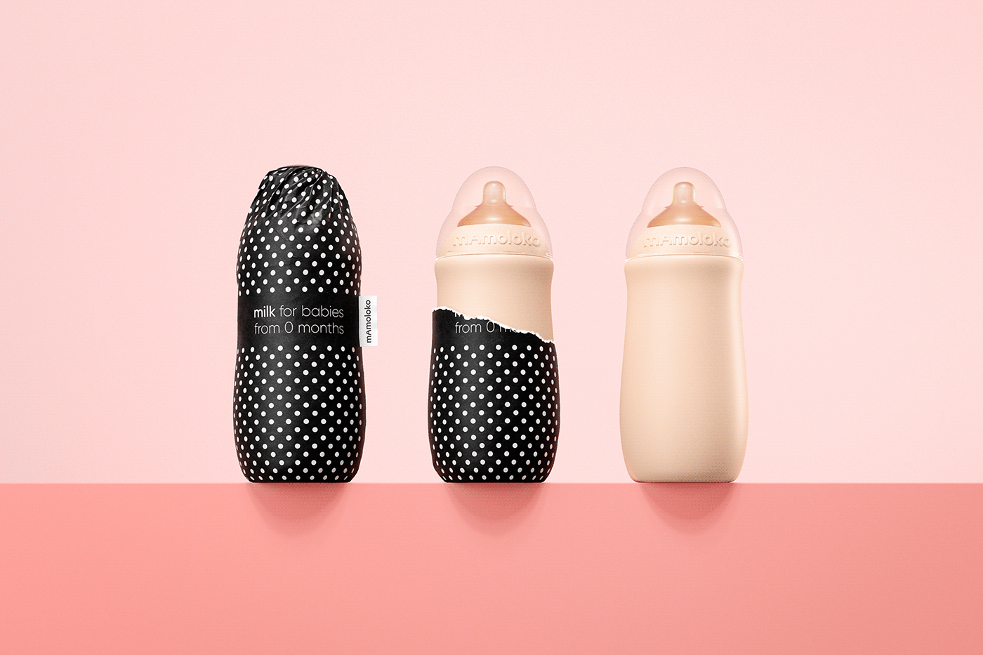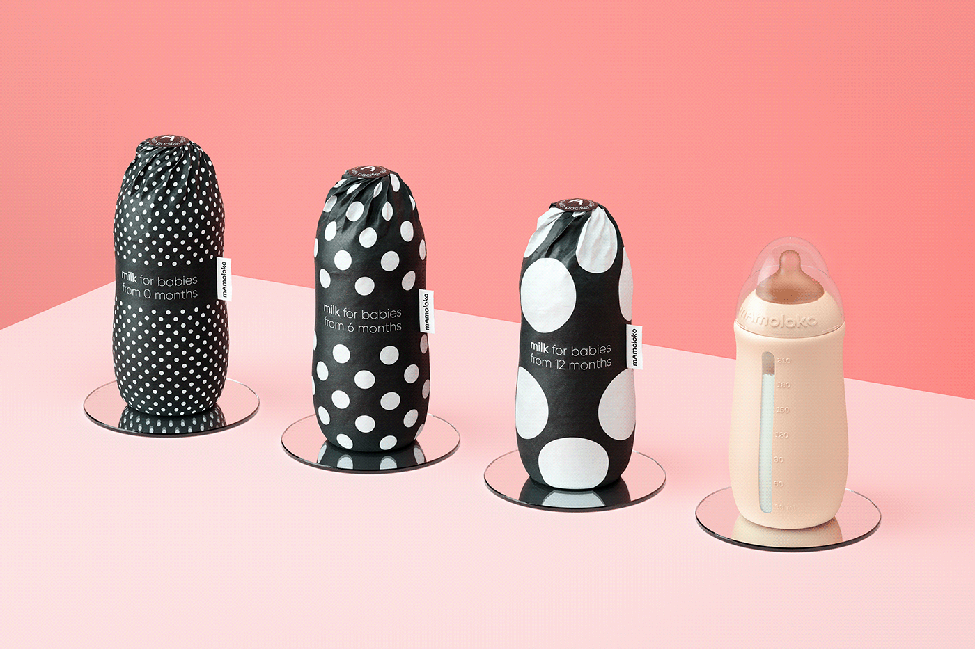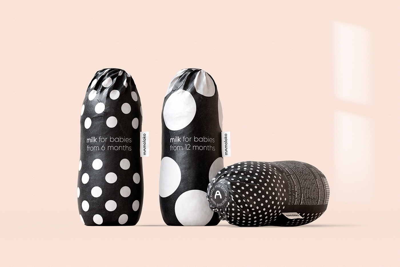Mamoloko是為年輕現(xiàn)代女性設(shè)計(jì)的牛奶配方。該包裝看起來像是時(shí)尚的配飾,是年輕母親形象的補(bǔ)充。黑白伽瑪與一頭母牛有關(guān)。這樣的包裝將在貨架上的其他乳制品中脫穎而出,并且,最重要的是,母親們將很高興看到這種產(chǎn)品。
