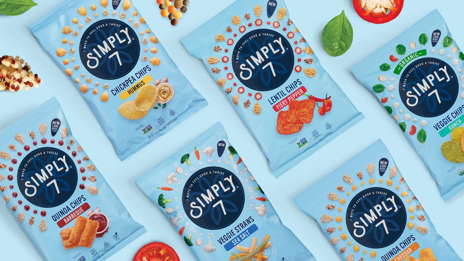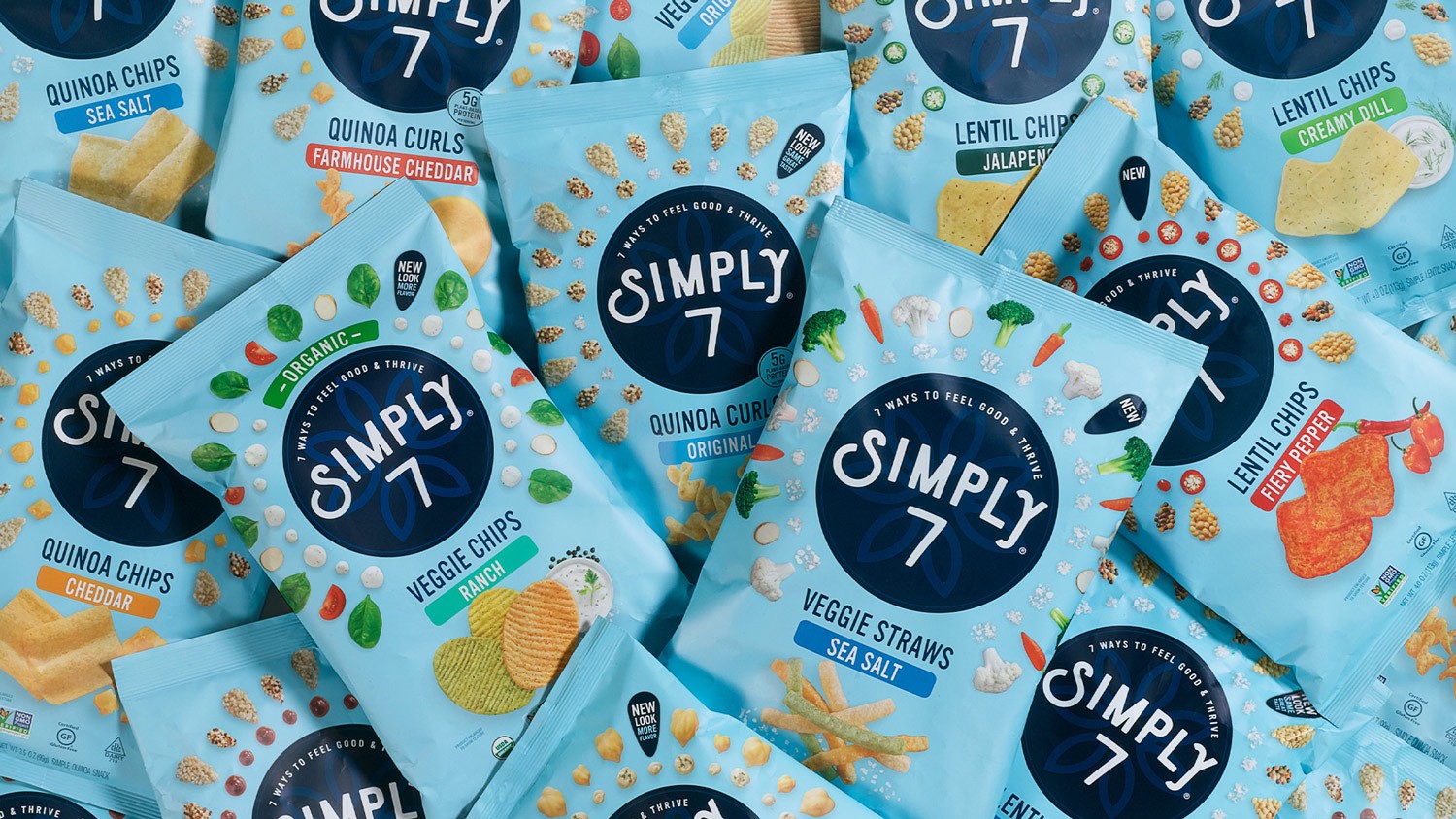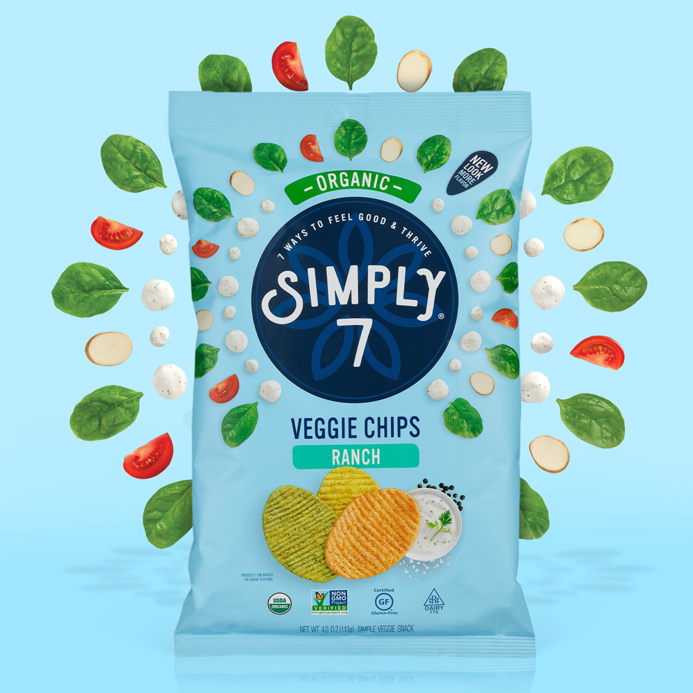 包裝設計師將Simply 7品牌從陳腐和不景氣轉(zhuǎn)變?yōu)橐粋€能讓零售商和消費者都興奮不已的賣座品牌。新的標識通過定制攝影來展現(xiàn)產(chǎn)品健康成分,獨特的品類色彩則在貨架上很流行,bullseye品牌則占據(jù)了中心位置。最后,一個能讓這些小吃有多么美味的設計(相信我們,我們只是癡迷于此)。