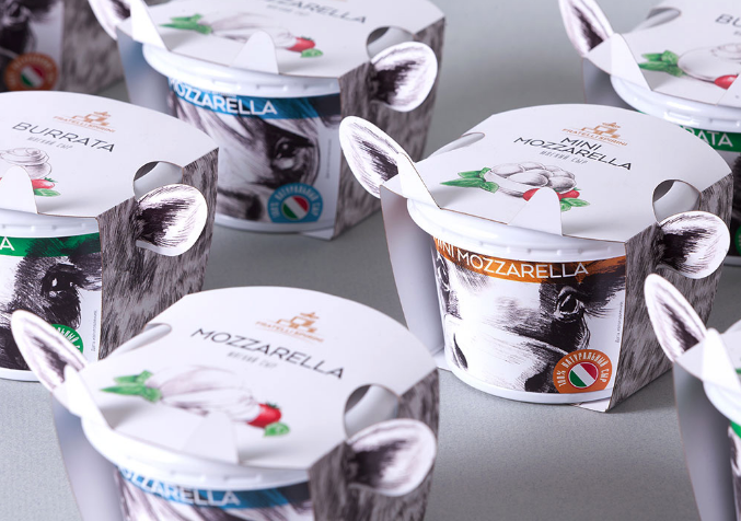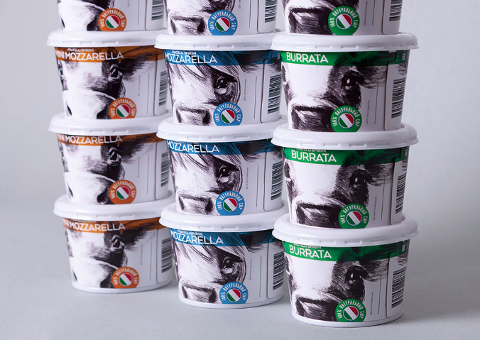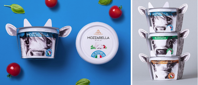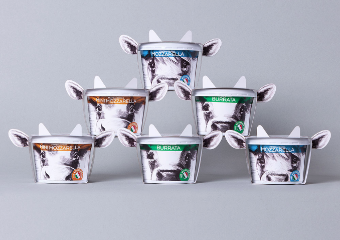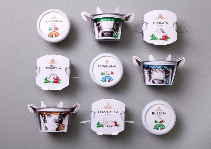 設(shè)計(jì)師把注意力集中在愛(ài)好喝酸奶的注意力上,創(chuàng)造了可愛(ài)的奶牛形象,突出品類(lèi)屬性,強(qiáng)調(diào)天然乳品,帶有耳朵和牛角的創(chuàng)意,在商店的貨架上非常的突出,而且色彩定位很快的區(qū)分酸奶的口味,意大利國(guó)旗和食物區(qū)在顏色上的設(shè)計(jì),使其品牌與國(guó)家寓意明顯,產(chǎn)品新的標(biāo)識(shí),意大利技術(shù)奶酪