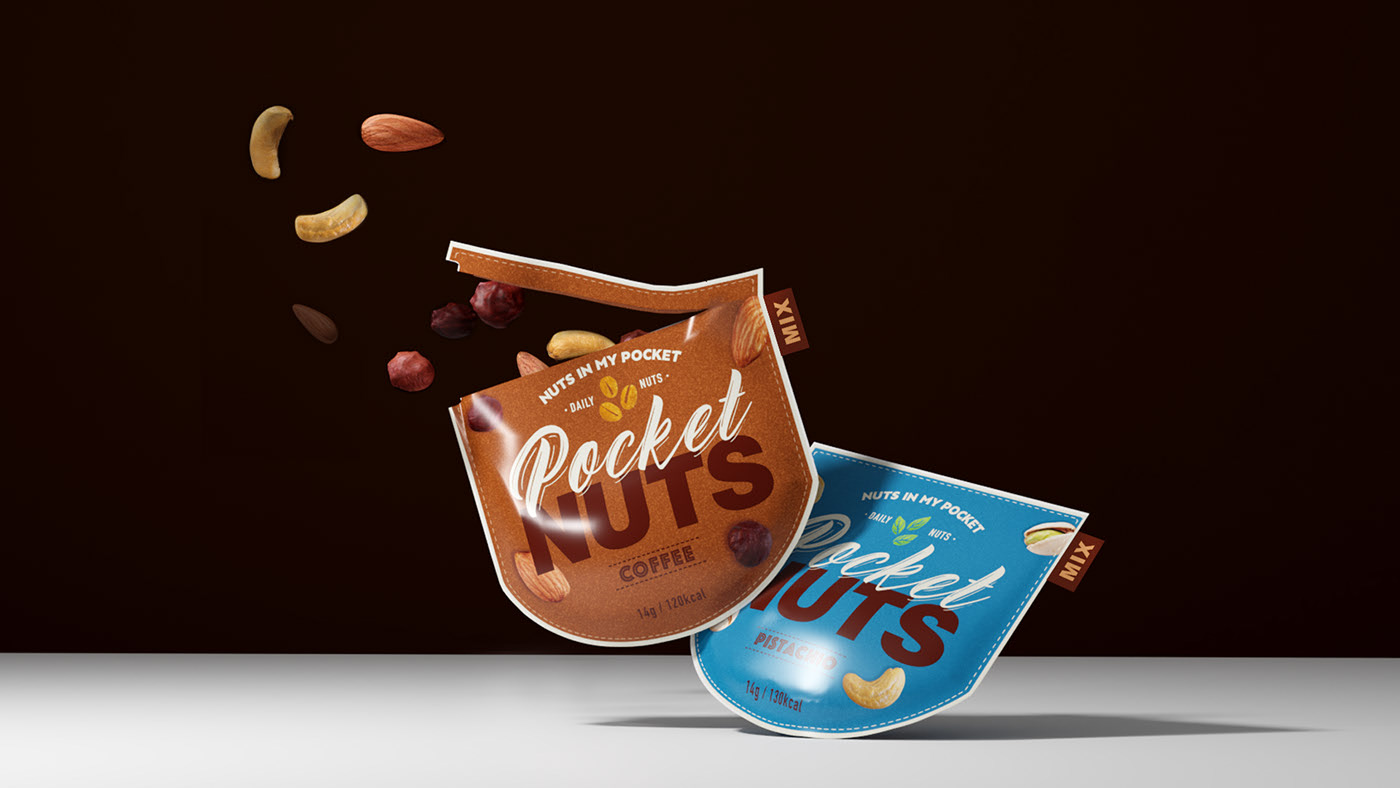 口袋堅(jiān)果是一種日常牛仔褲包裝,以牛仔褲口袋的概念制成。