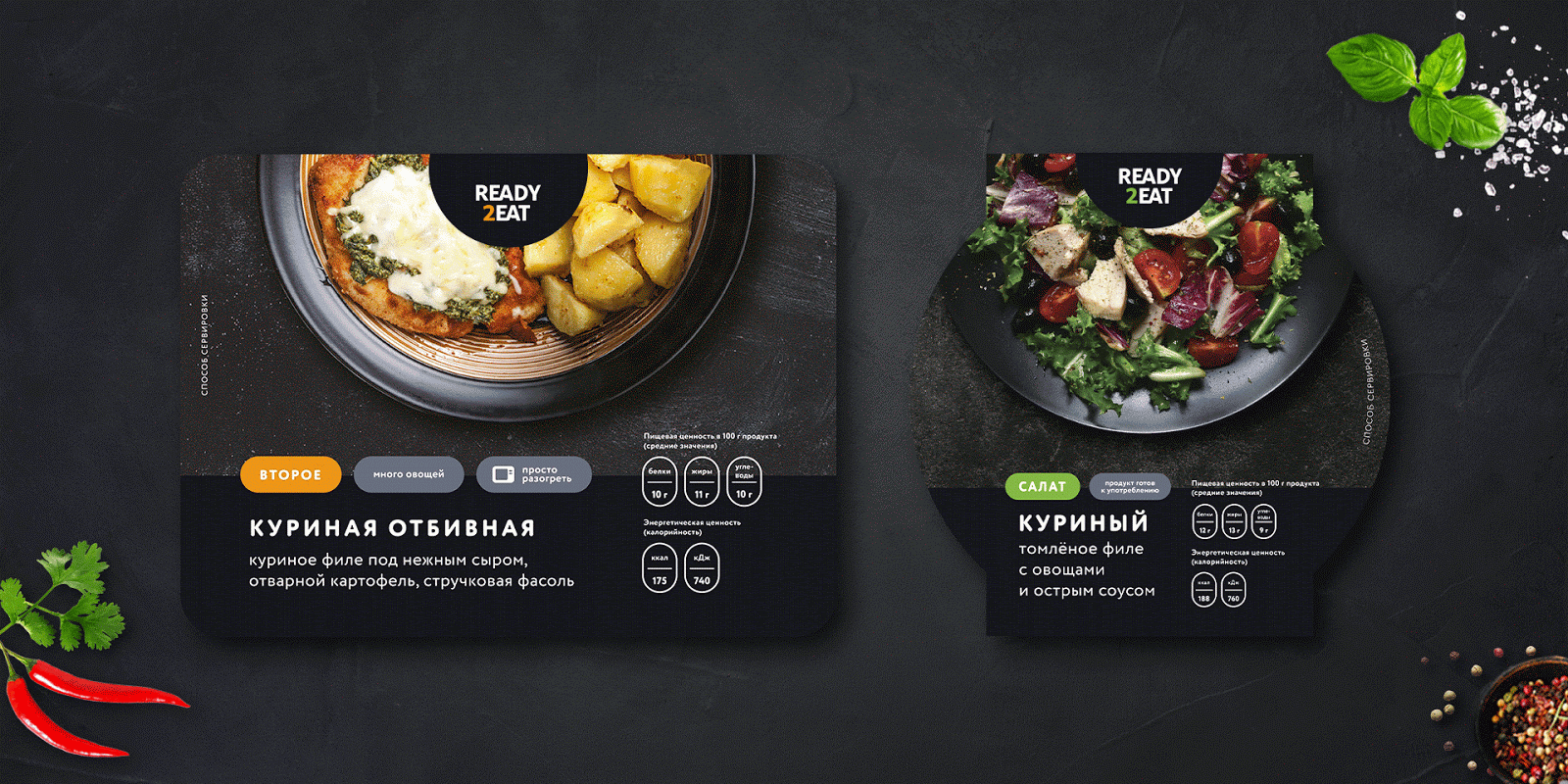 在開發(fā)設(shè)計(jì)時(shí),要考慮幾個(gè)要點(diǎn)。首先,該生產(chǎn)線適用于大量產(chǎn)品。計(jì)劃一段時(shí)間后,將包括多達(dá)一百種菜肴和飲料。用于此類品牌的企業(yè)標(biāo)識(shí)系統(tǒng)應(yīng)考慮所有擴(kuò)展產(chǎn)品范圍的選擇。其次,在購買任何產(chǎn)品之前,客戶必須注意其包裝,感到食欲并想嘗試?yán)锩娴臇|西。同時(shí),整個(gè)READY2EAT系列都以密閉包裝出售-食物不可見。這意味著,設(shè)計(jì)應(yīng)引起注意并激發(fā)食欲。