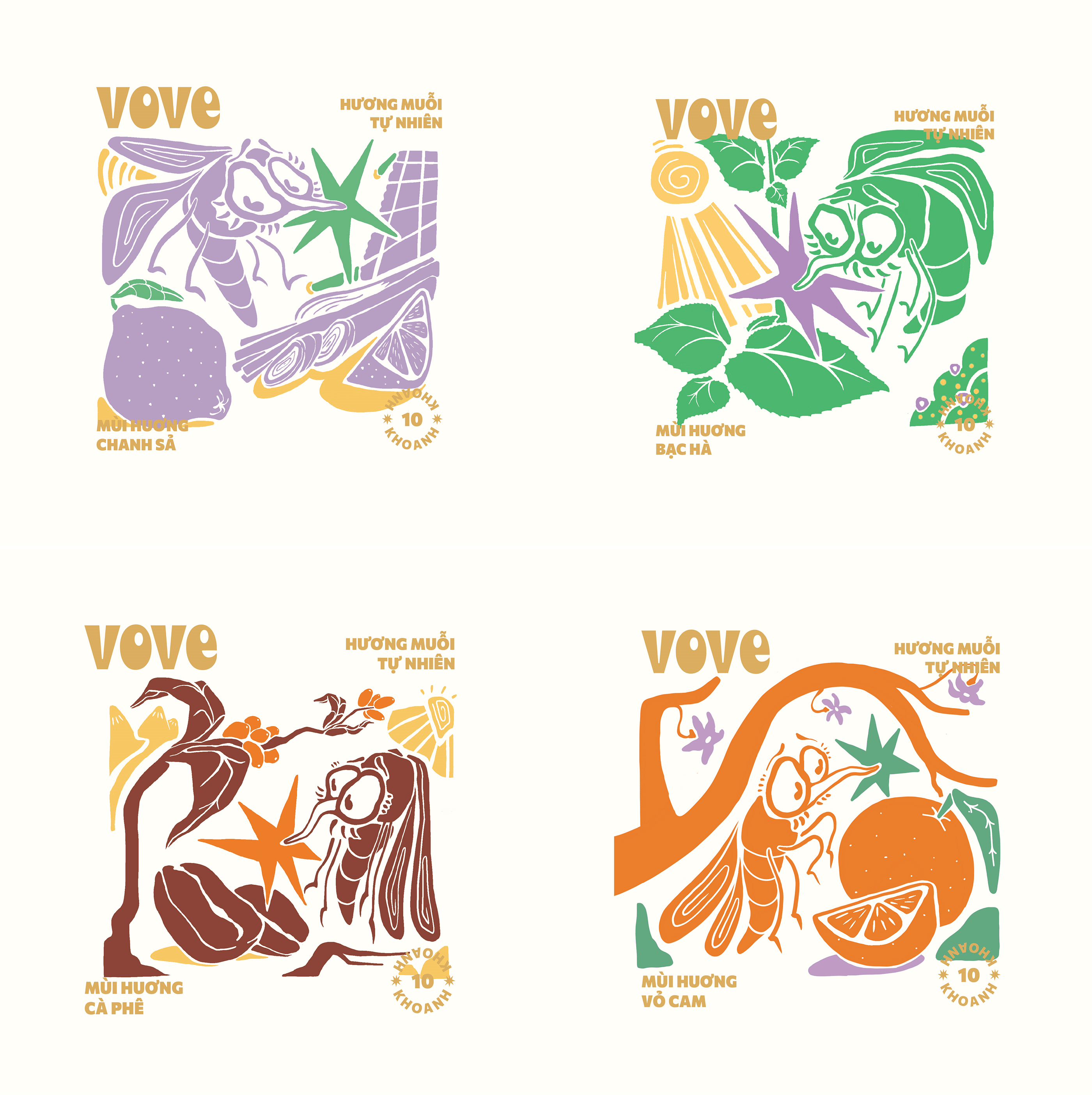 VOVE創(chuàng)造了一系列香檸檬草,橙皮,咖啡,薄荷(這些天然成分可叮咬并驅(qū)趕蚊子)我們要創(chuàng)造醒目的,年輕且環(huán)保的包裝。因此,我們使用可回收材料,尤其是天然成分。我們不希望包裝上有死蟲,而是它們與包裝融合在一起,形成了引人注目的有趣包裝組成。