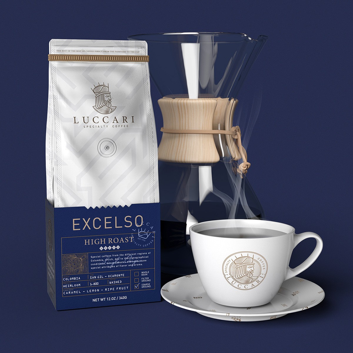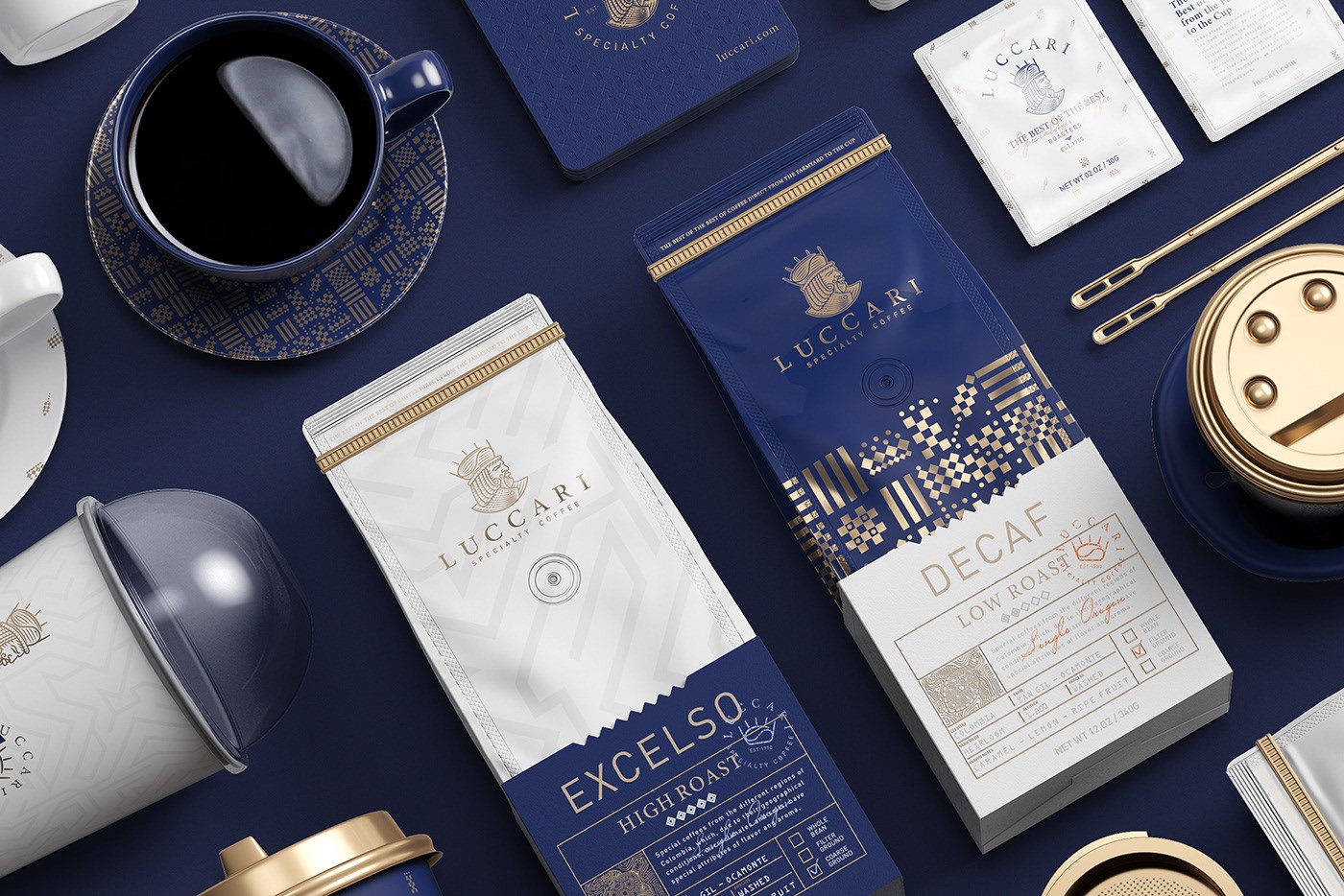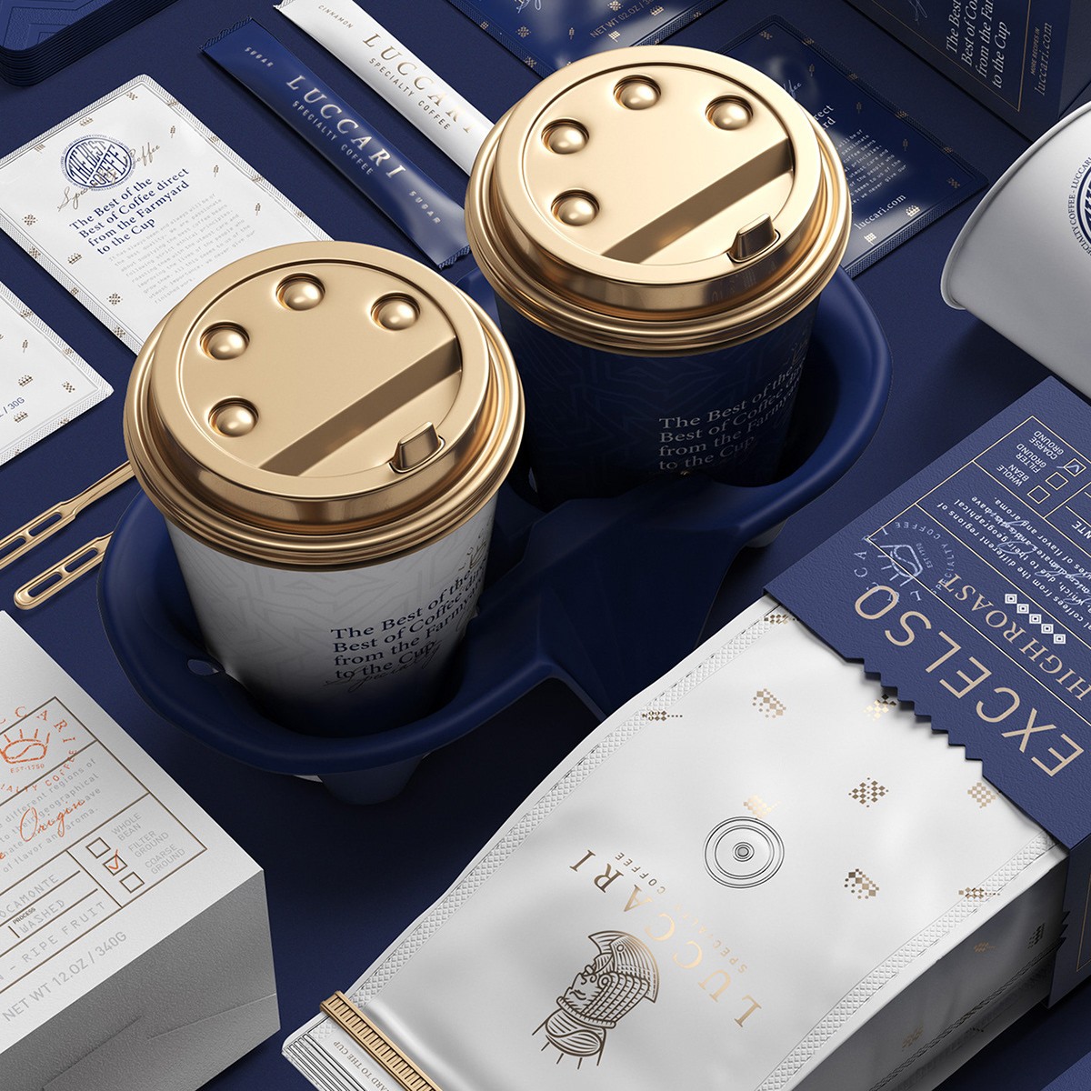 設(shè)計(jì)創(chuàng)意一個(gè)代表咖啡之王的符號(hào),賦予其挑剔,獨(dú)特和富麗堂皇的個(gè)性。此符號(hào)伴隨著整個(gè)企業(yè),豪華和精選概念的資源,藍(lán)色,圖案和紋理由獨(dú)特的力量和優(yōu)越性符號(hào)塑造而成,例如皇冠,員工,城堡的塔樓,標(biāo)志和旗幟。它還考慮到了鍍金或電鍍等金屬化印刷品,以進(jìn)一步體現(xiàn)精選概念。