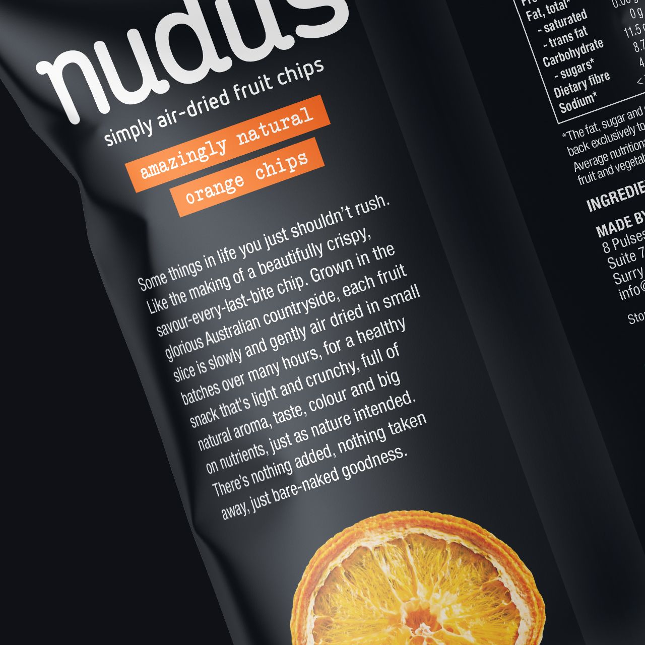 我們?yōu)槌鮿?chuàng)公司Nudus提供的產(chǎn)品包裝和品牌精美展示了這些健康的果蔬脆片的“裸裸美善”理念和有趣的幽默感。